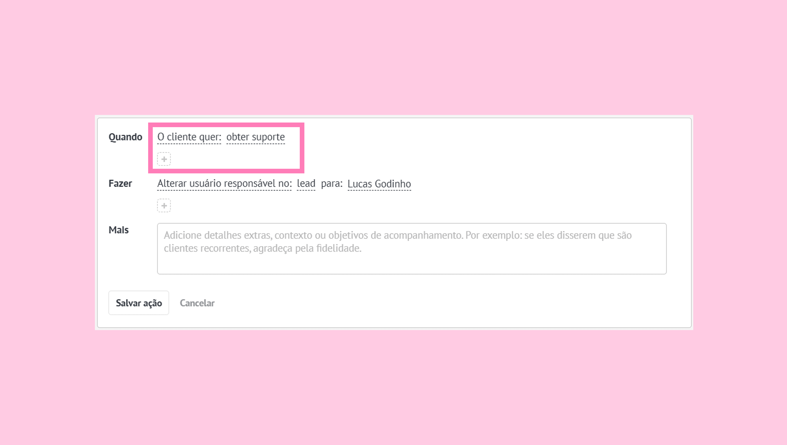 Escolha a condição QUANDO: O cliente quer: obter suporte.