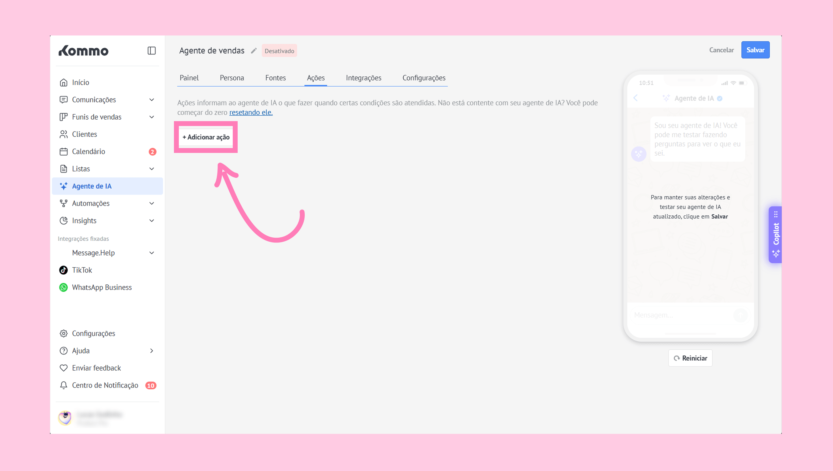Neste artigo, você aprenderá como configurar o agente de IA com múltiplas ações para qualificar leads, desde a primeira resposta até a transferência da conversa, usando as configurações disponíveis no agente de IA.