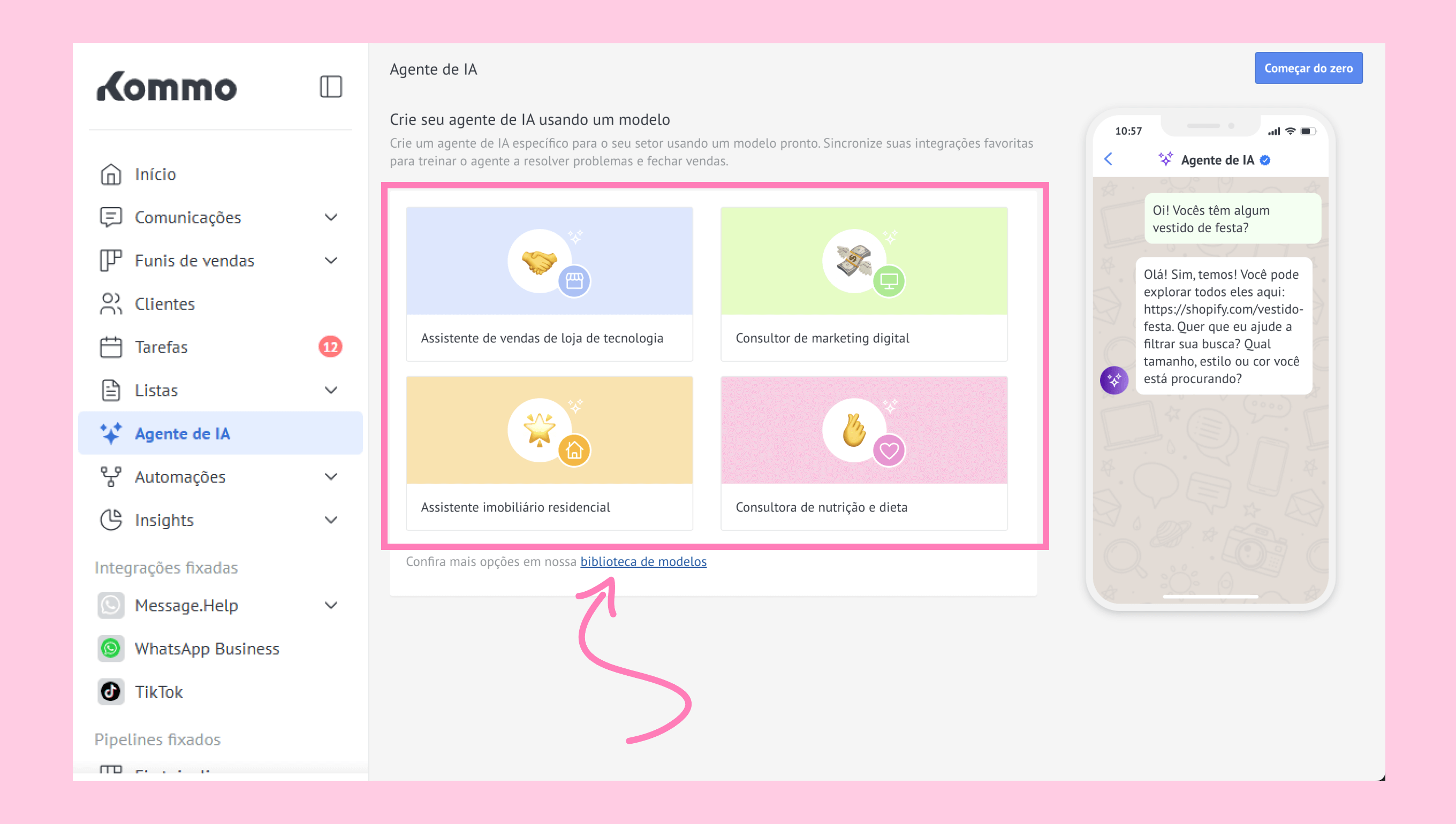 Ou clique em biblioteca de modelos para mais opções: