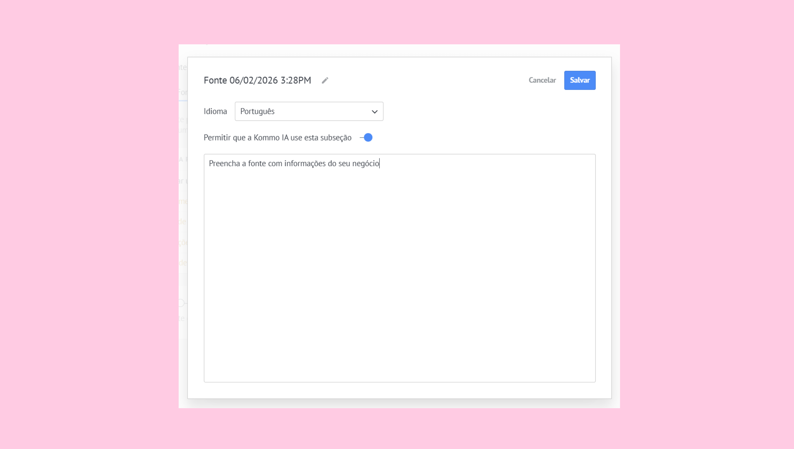 Desativar mantém a fonte vinculada, mas a desativa temporariamente para todos os recursos de IA.