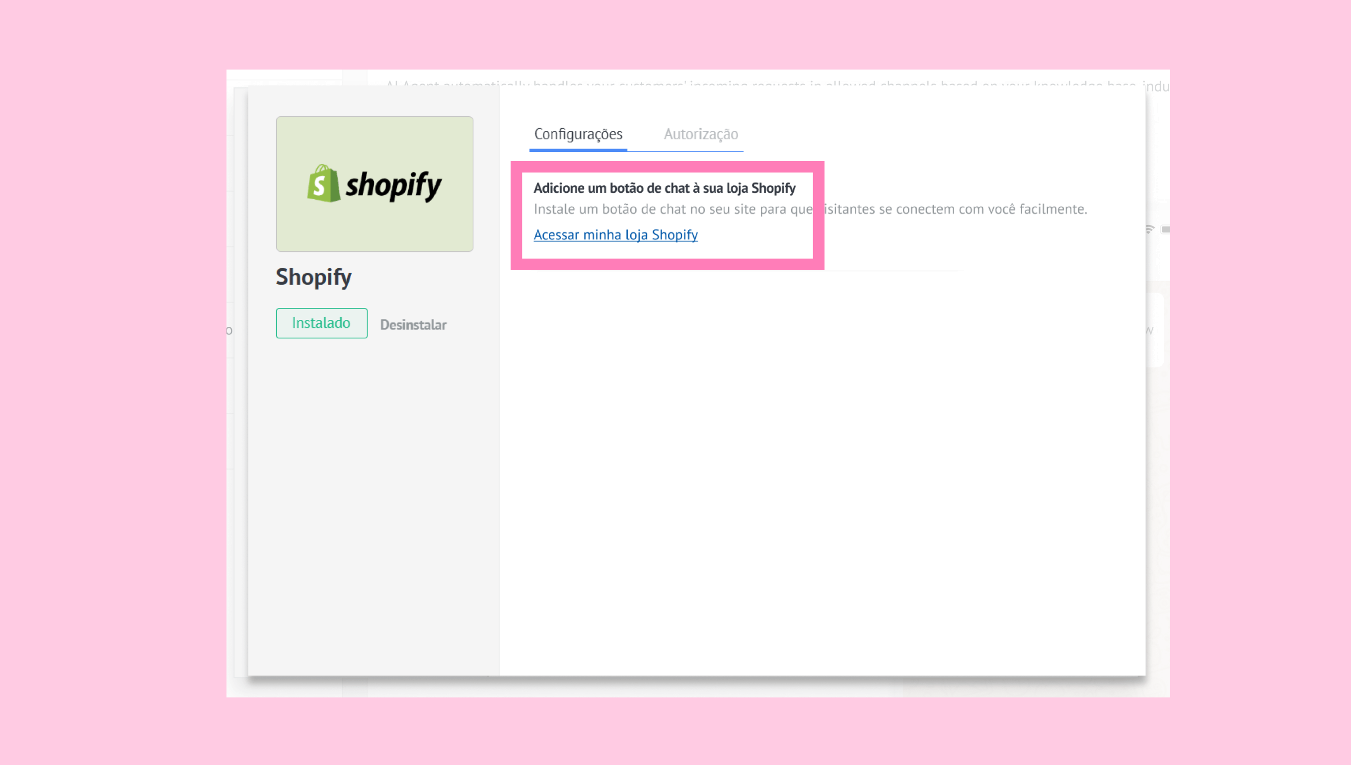 Veja como configurar a integração usando o Shopify como exemplo: