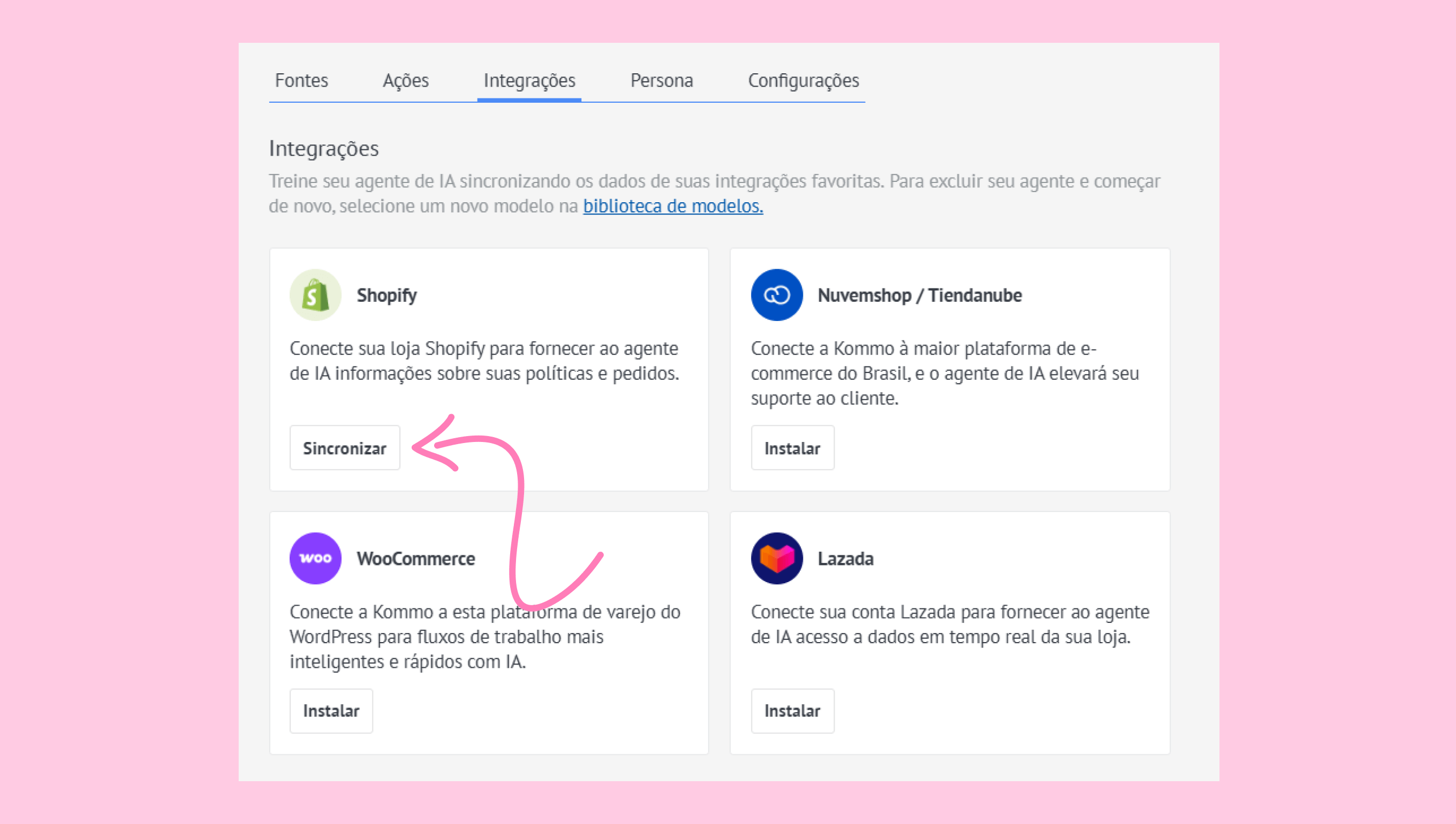 - Retorne à Kommo. O agente de IA começará a sincronizar todos os seus dados do Shopify.