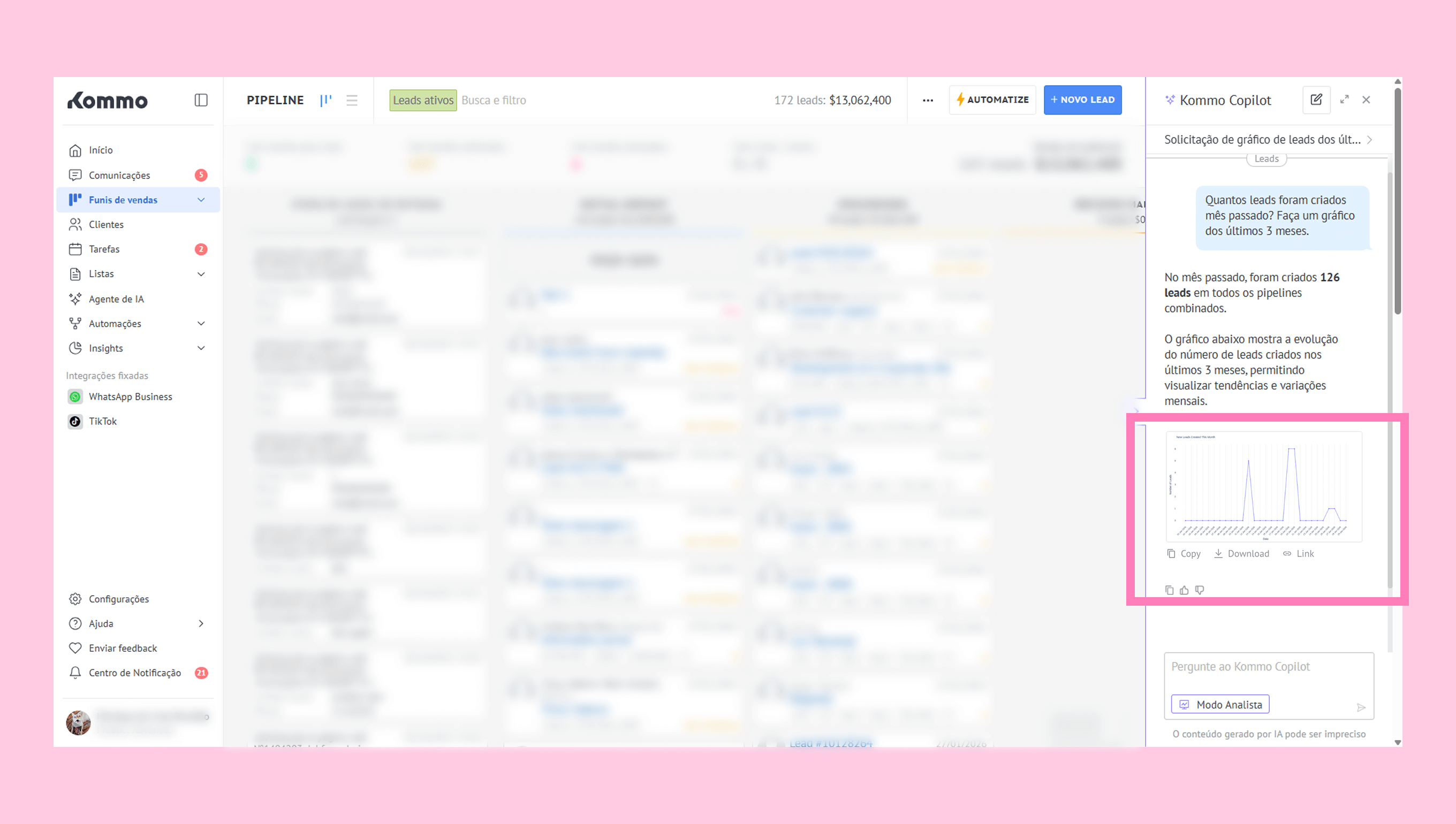 Para mais informações sobre o Copilot, veja nosso guia do Copilot da Kommo.