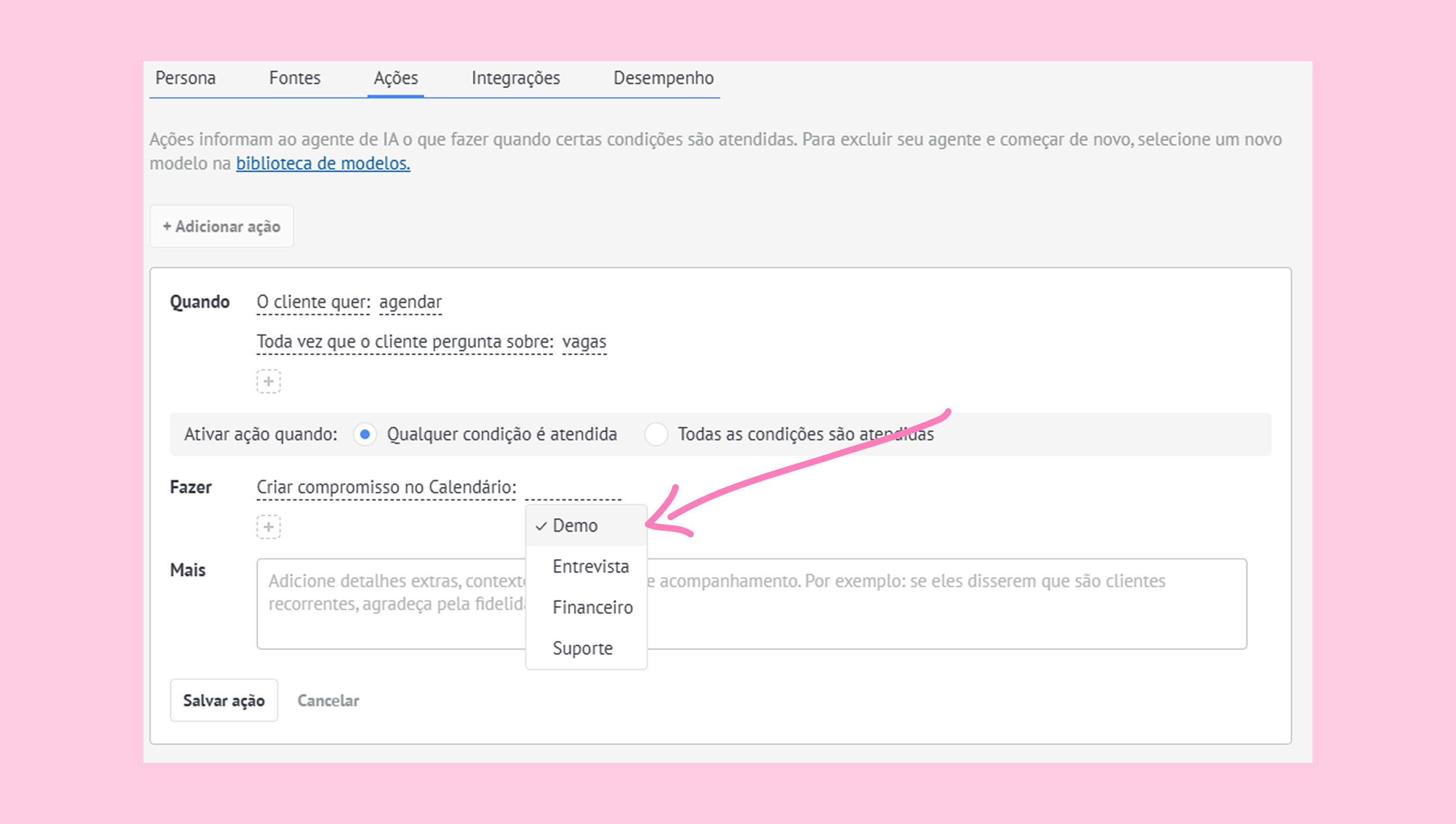 Saiba mais sobre o agente de IA e como configurá-lo.