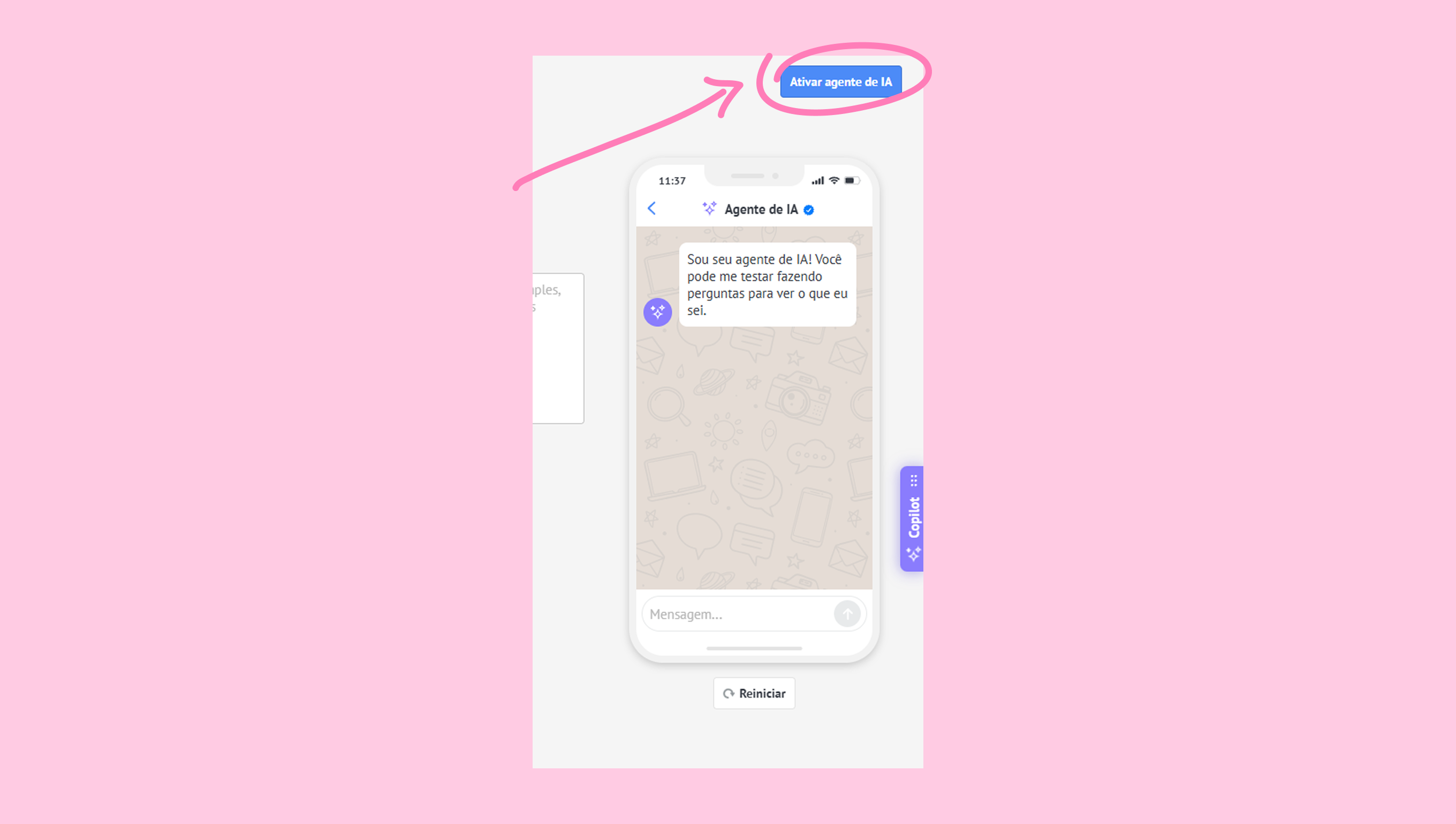 Clique em Ativar agente de IA no canto superior direito para ativar o agente de IA.