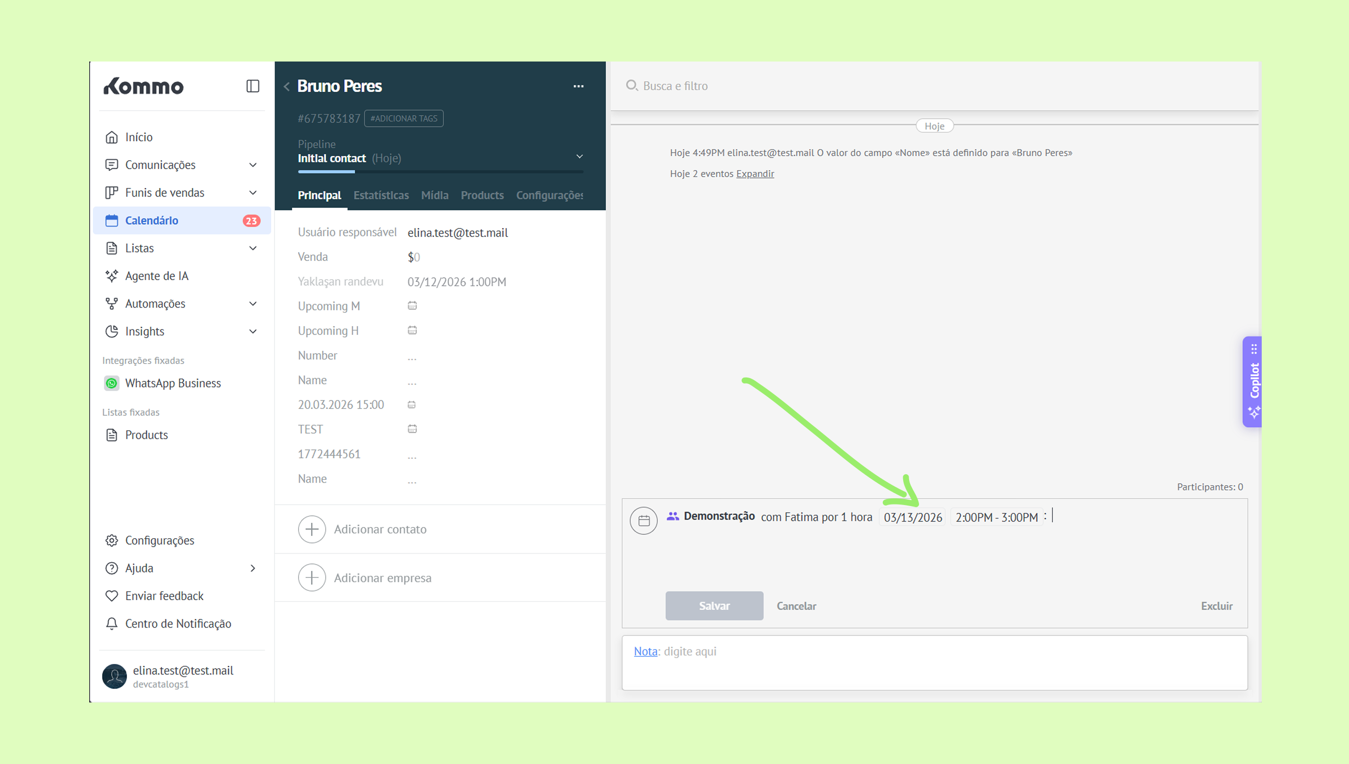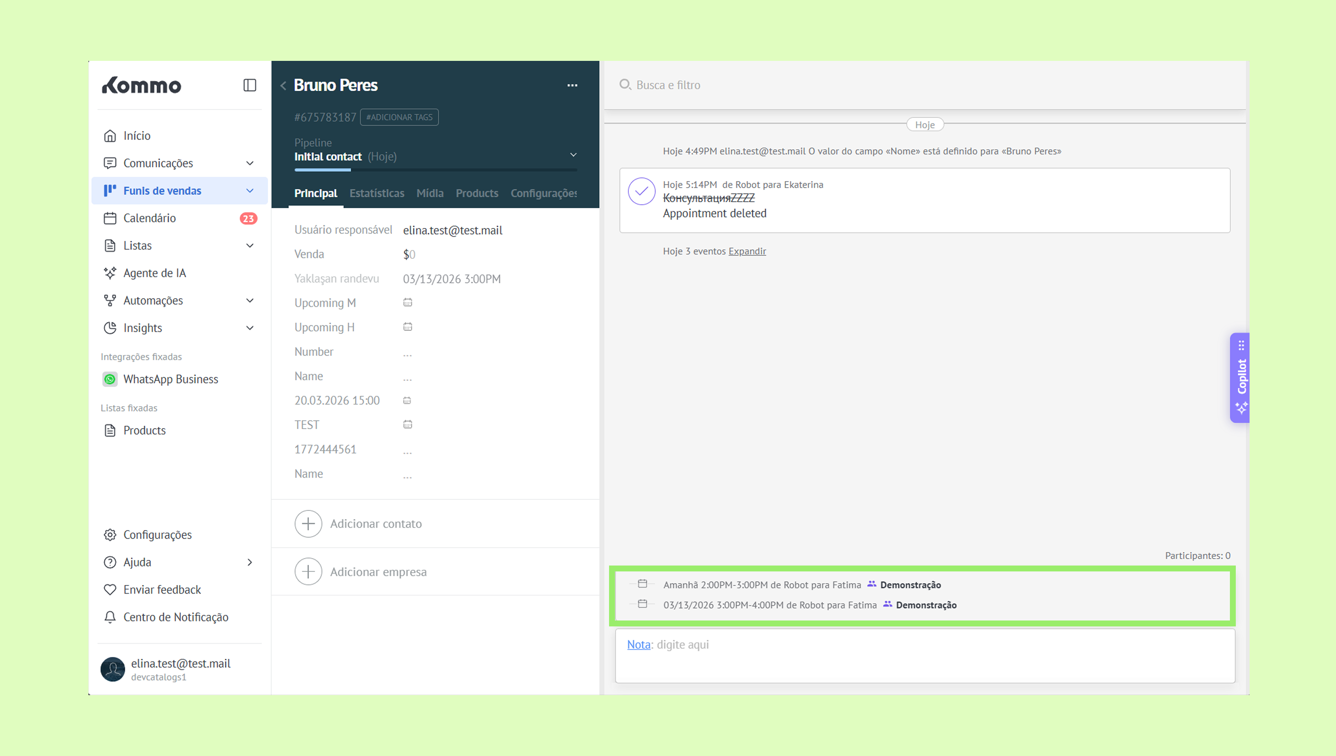 Observação: Os agendamentos na Kommo não podem se sobrepor. No entanto, as tarefas podem se sobrepor aos agendamentos.