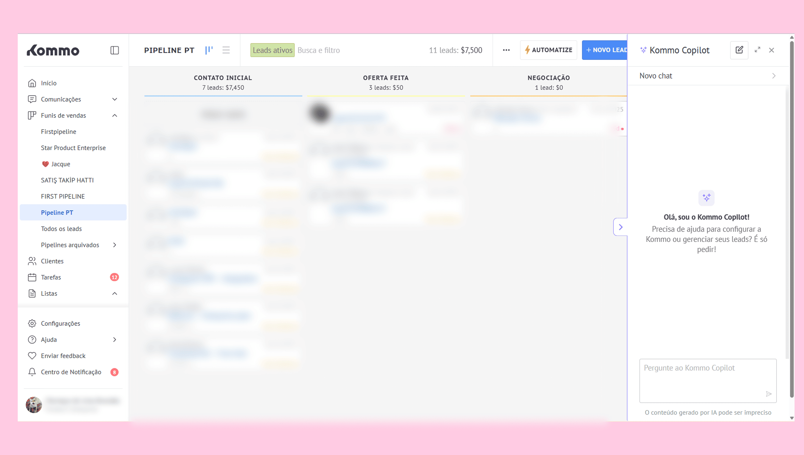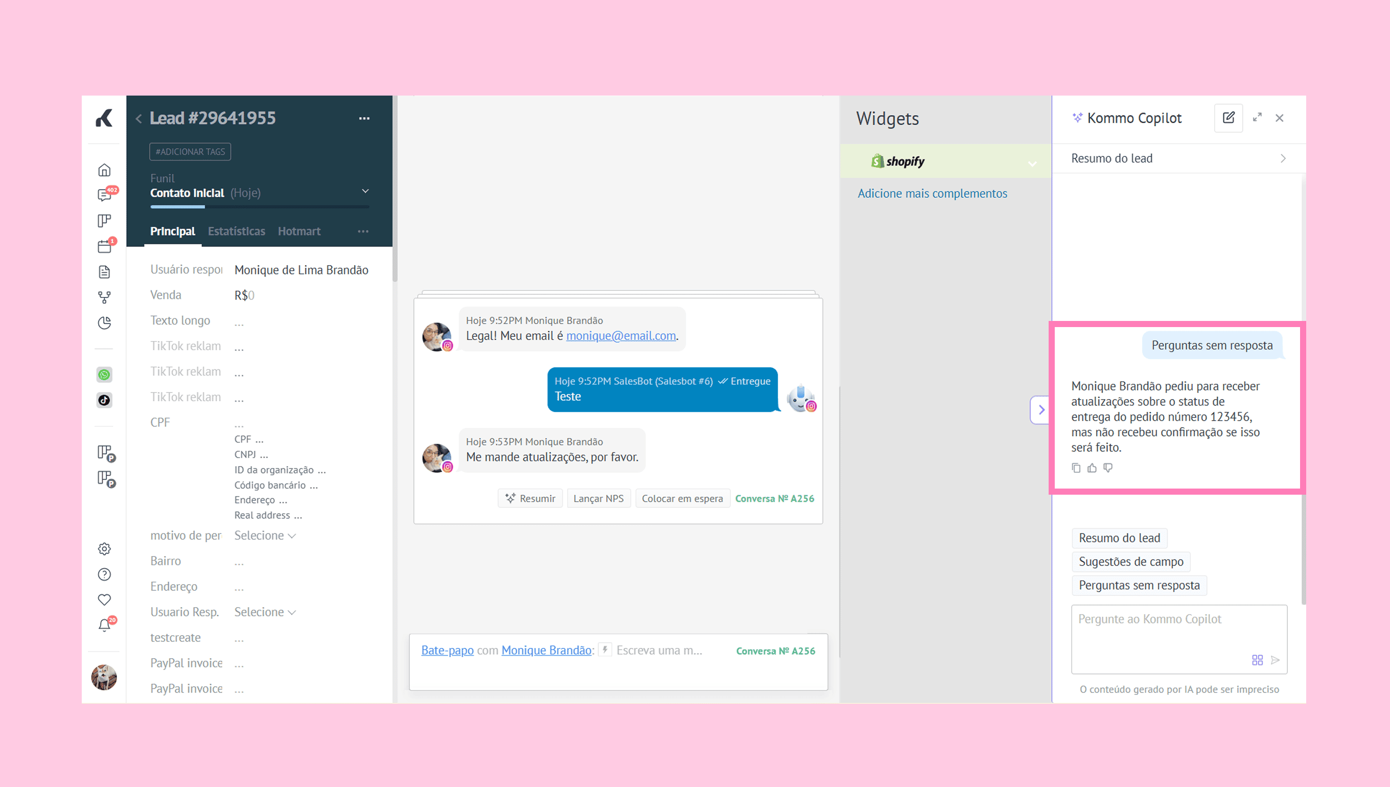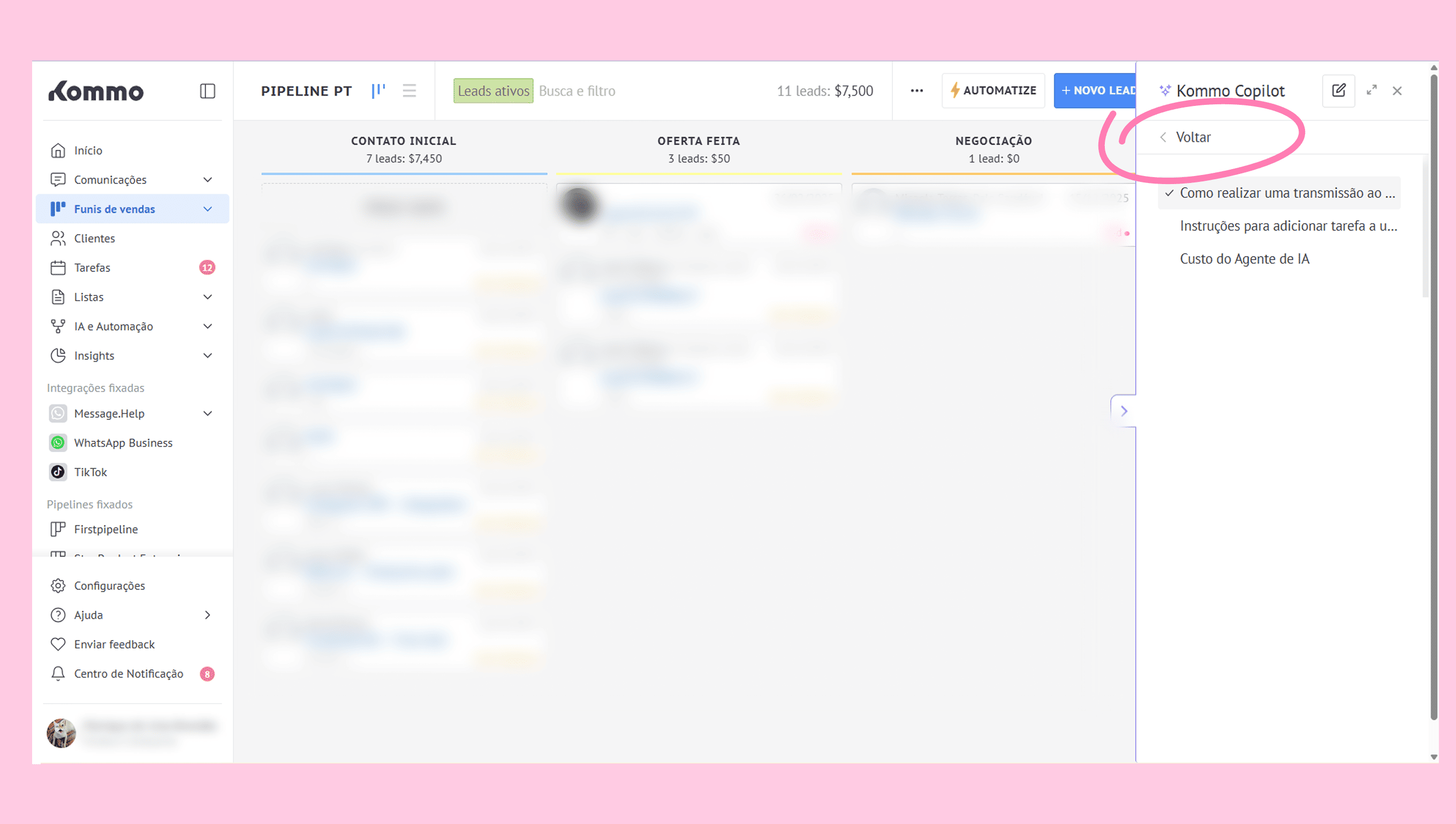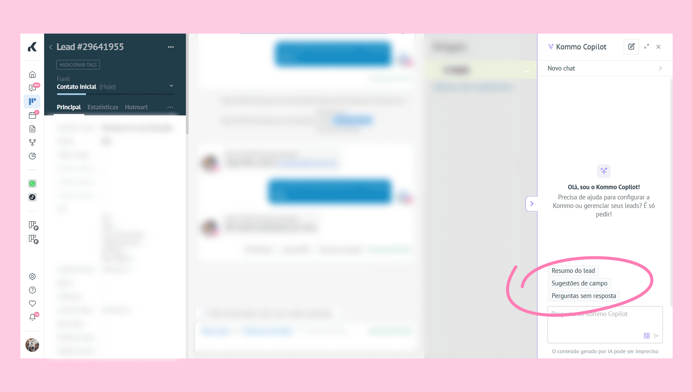 Converse com o Copilot da Kommo