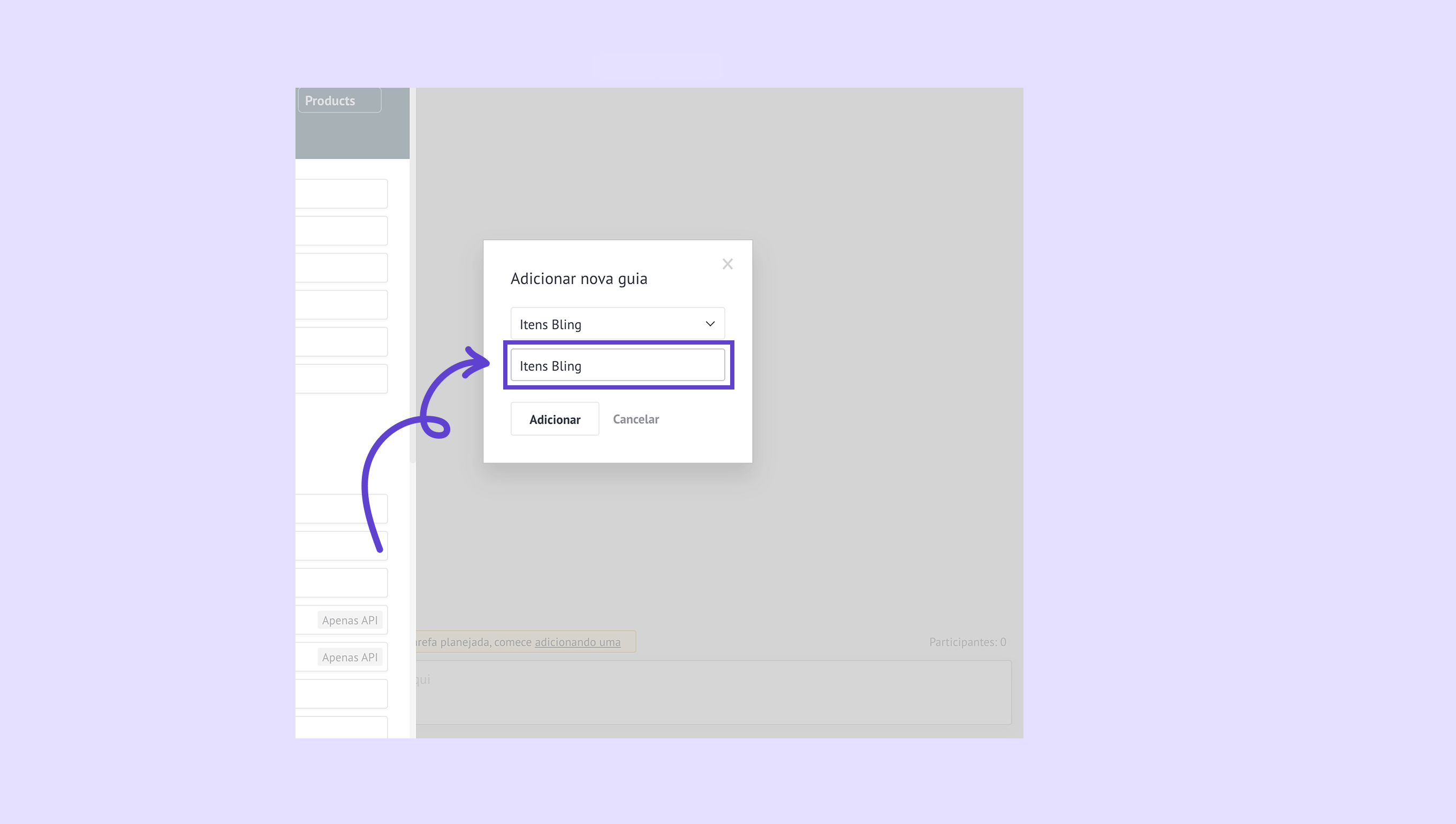 Dê um nome à aba (por exemplo: Itens Bling) e clique em Adicionar.