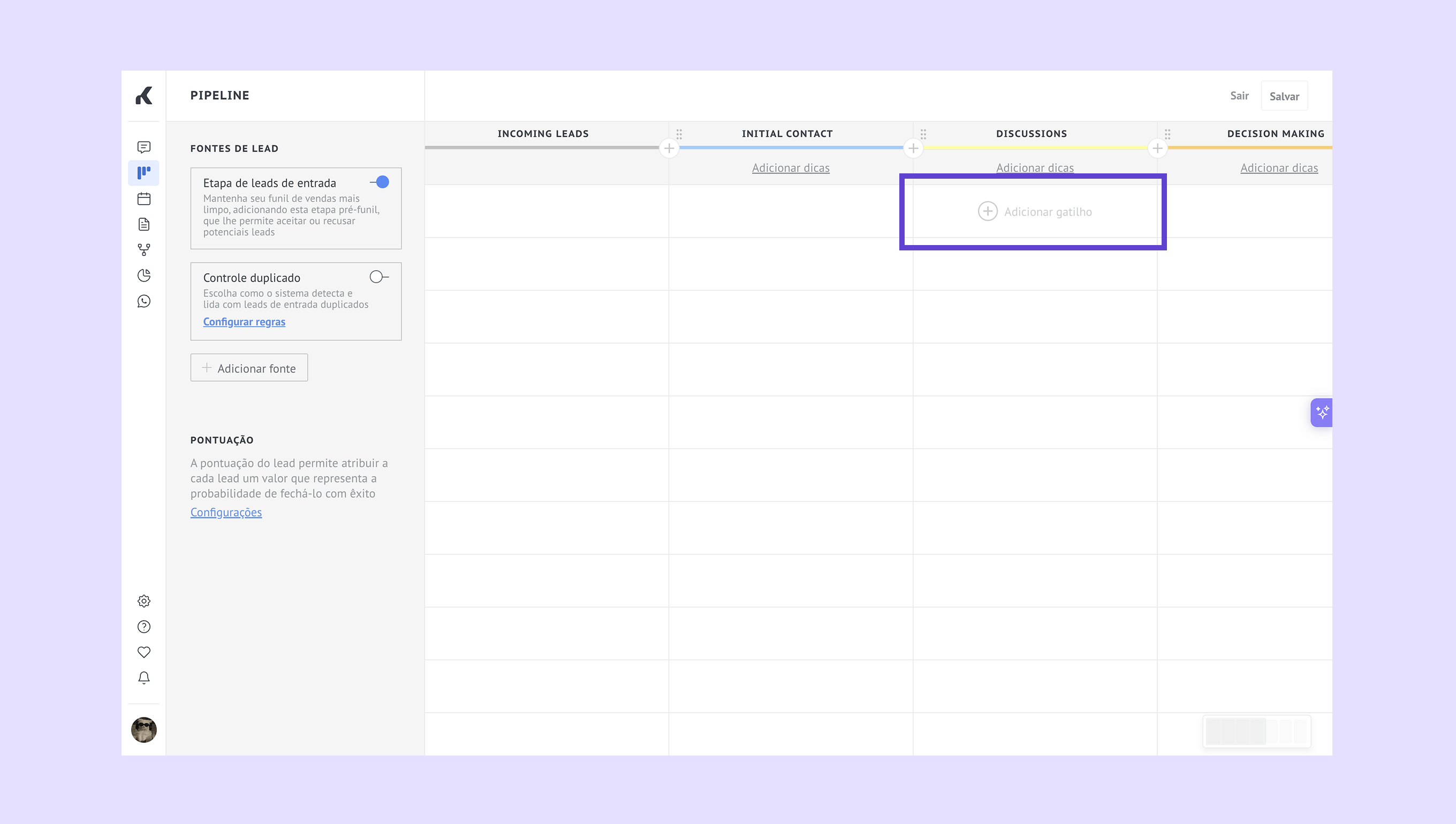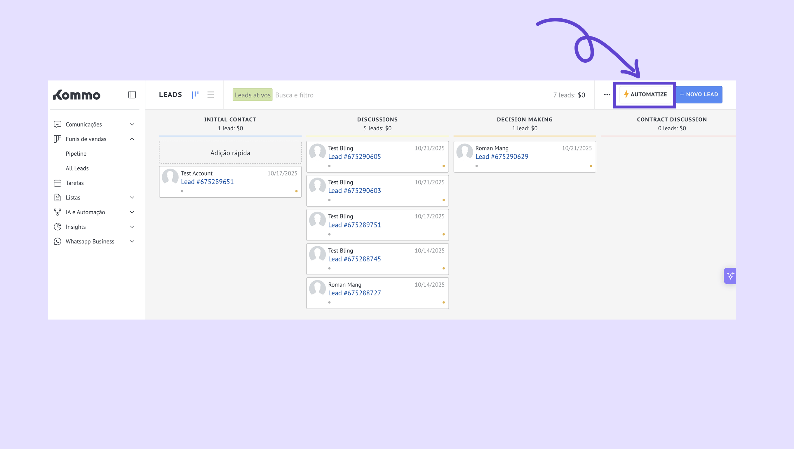 Assim que o gatilho estiver ativo, a Kommo criará um pedido automaticamente quando um lead atingir a etapa selecionada.