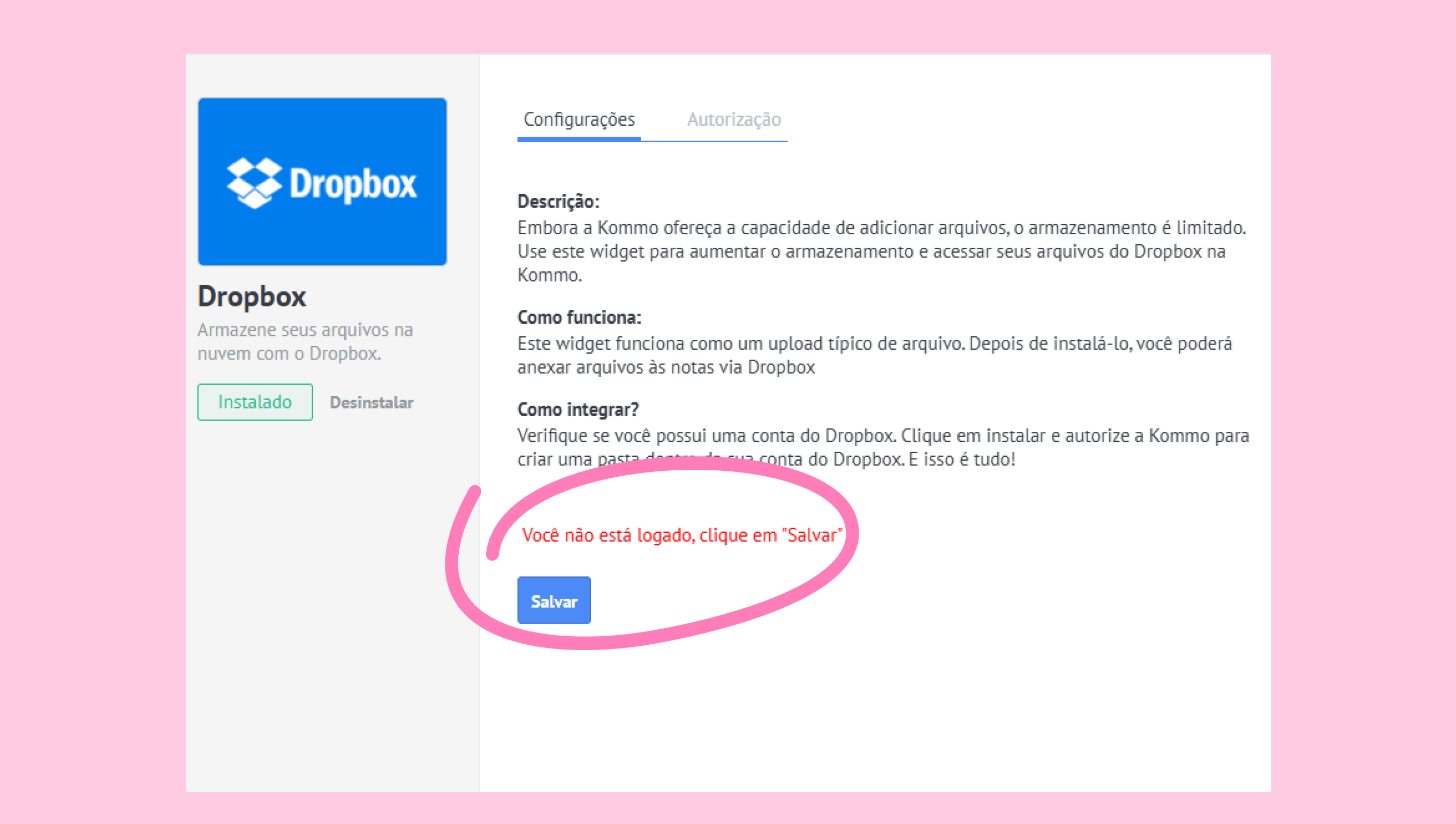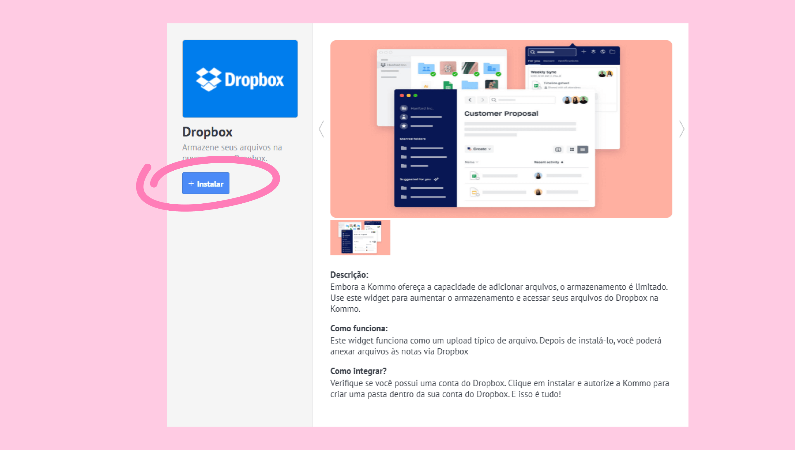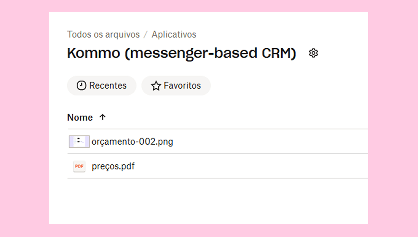A integração permite aumentar a capacidade de armazenamento da sua conta, anexando arquivos aos cartões de leads da Kommo, que são então salvos no Dropbox: