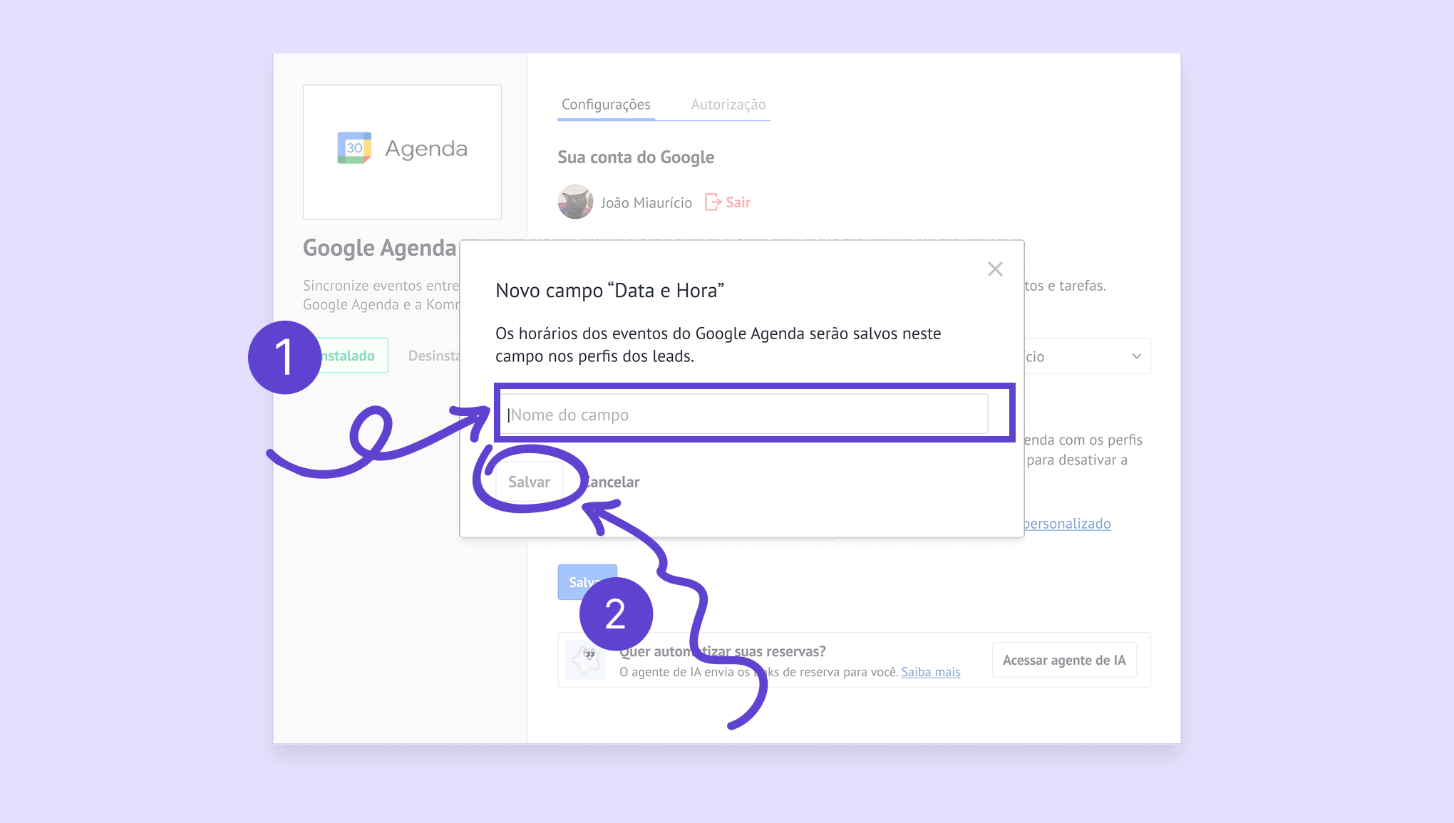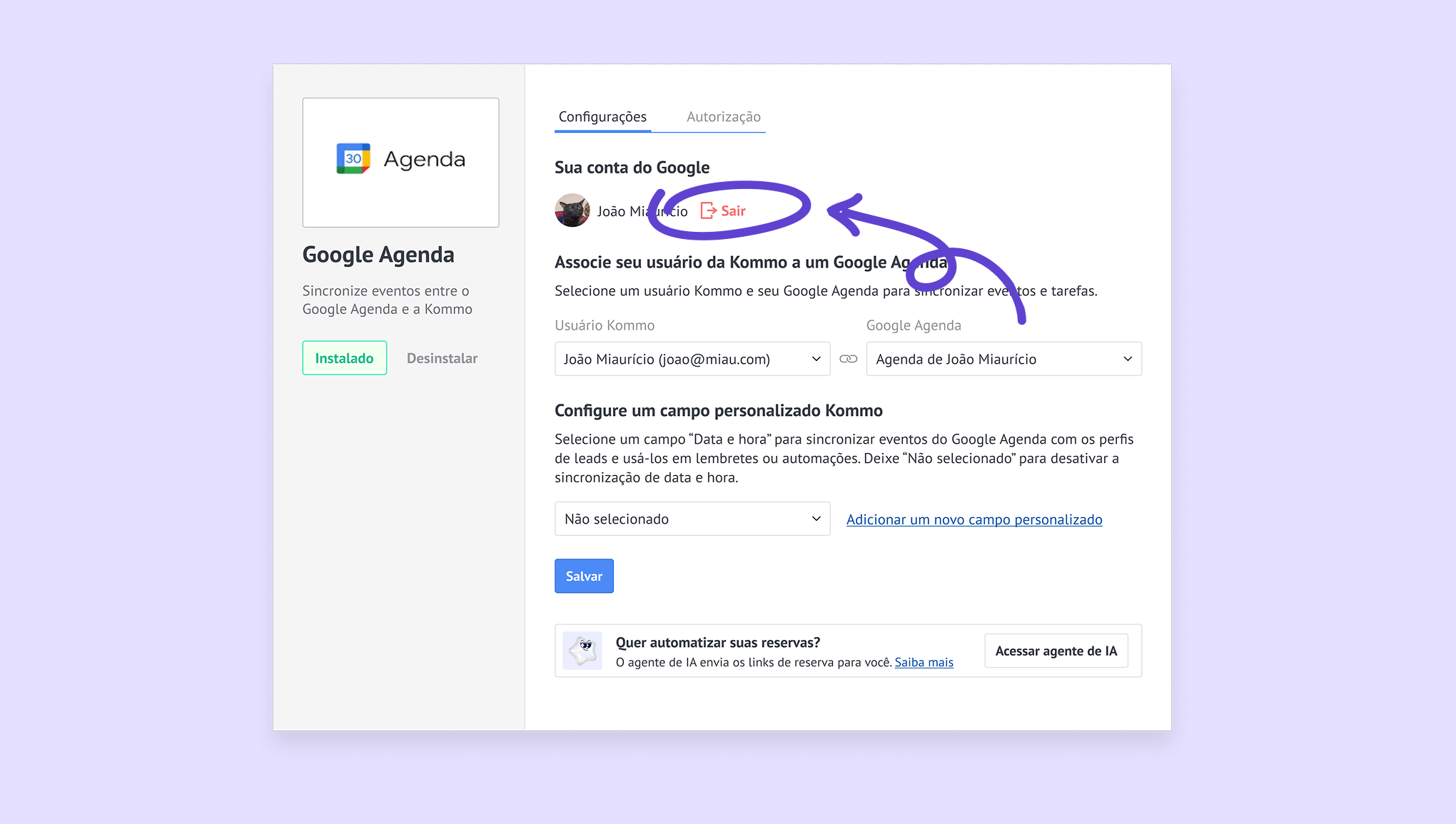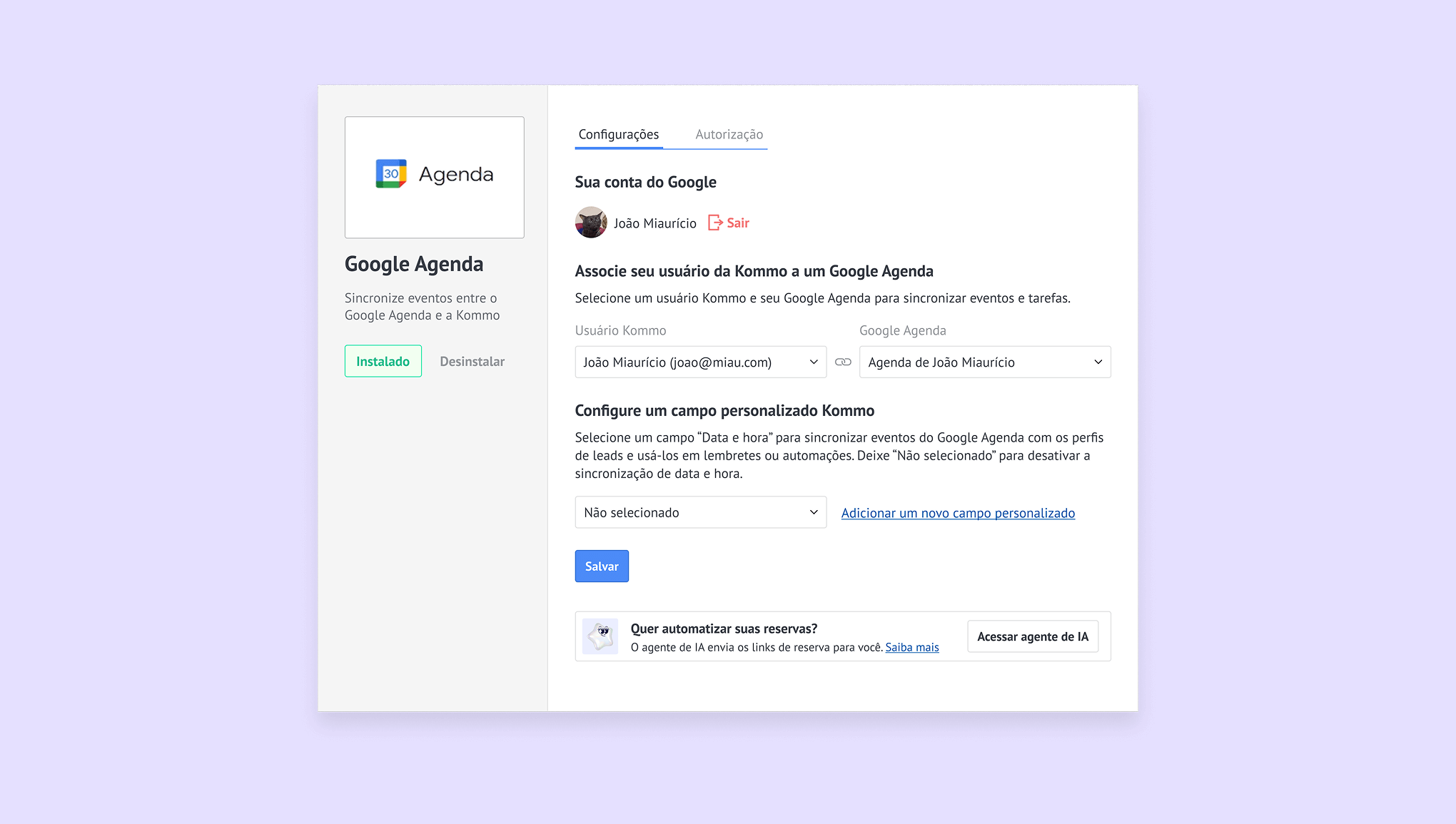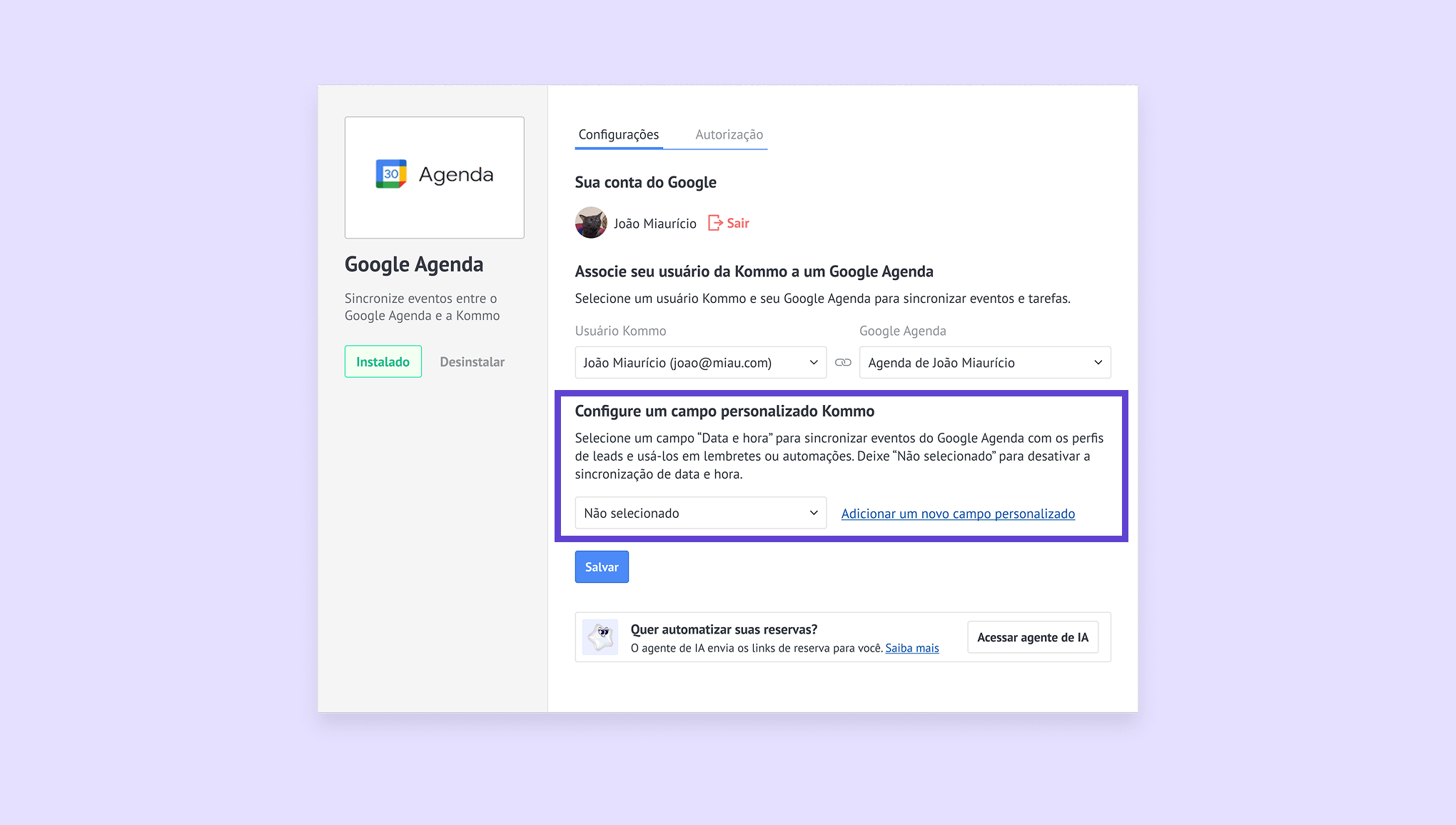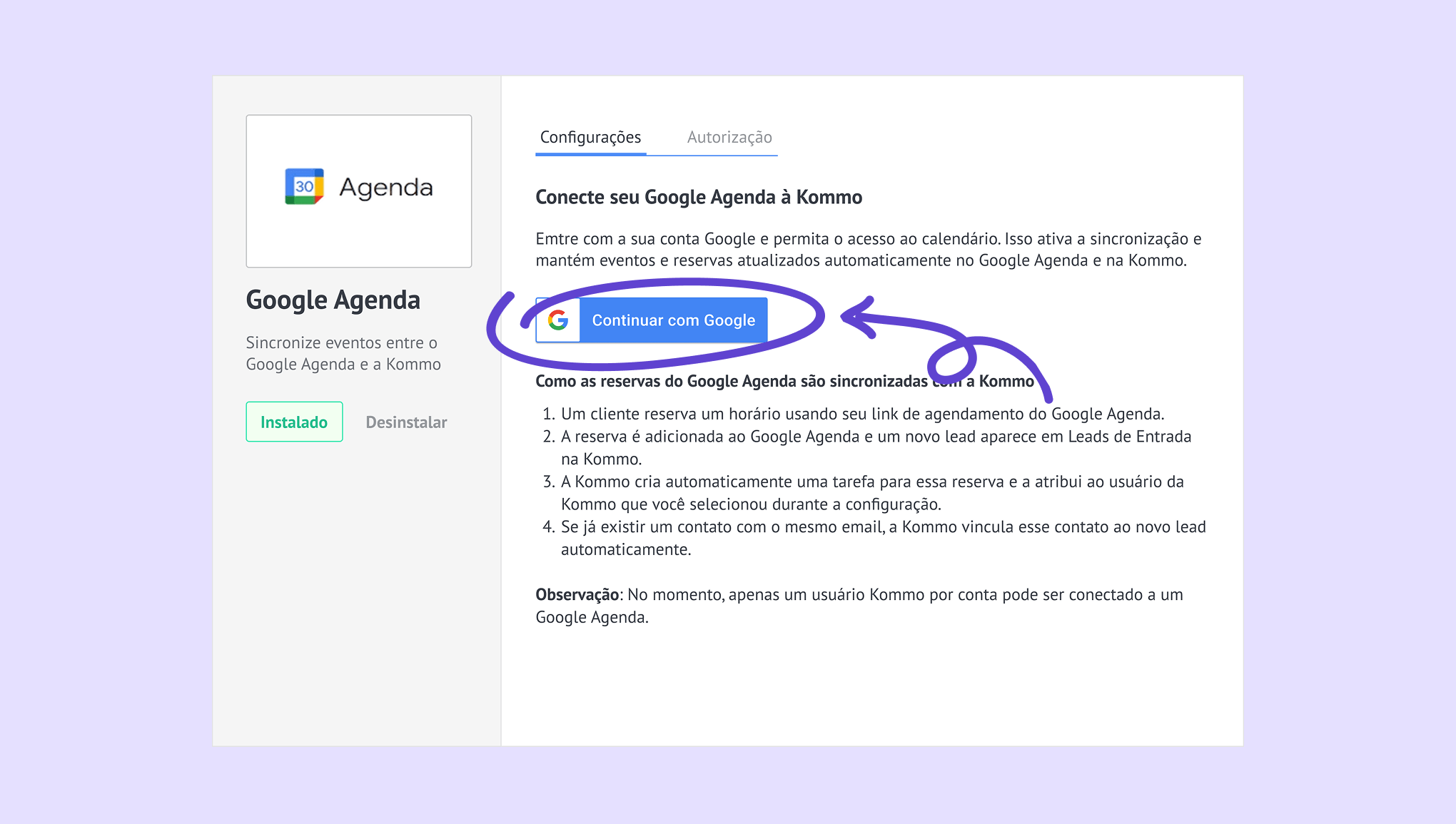 Conecte o Google Agenda à Kommo