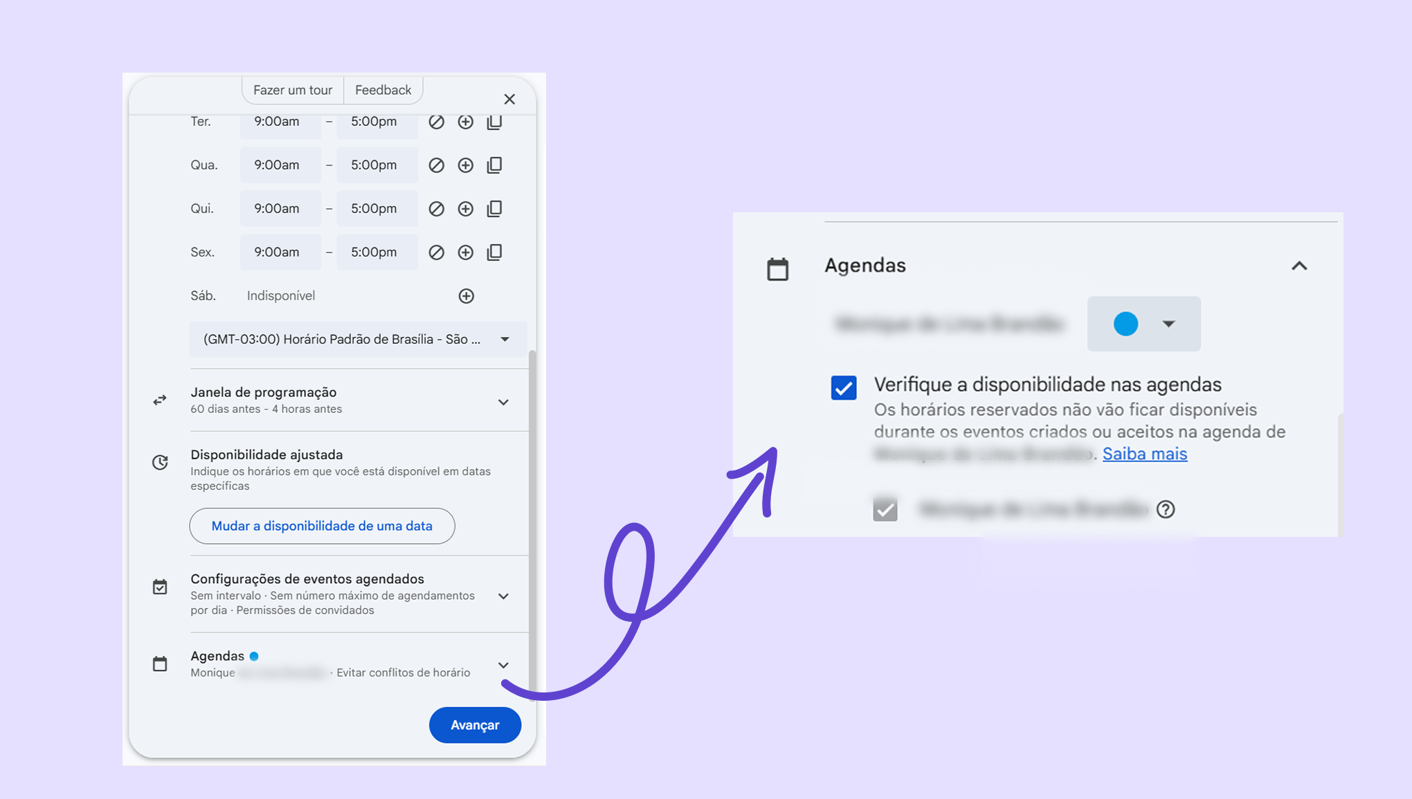 Lembre-se de ativar a opção Verifique a disponibilidade nas agendas para evitar que as reservas dos clientes coincidam com outras reservas ou eventos no calendário.