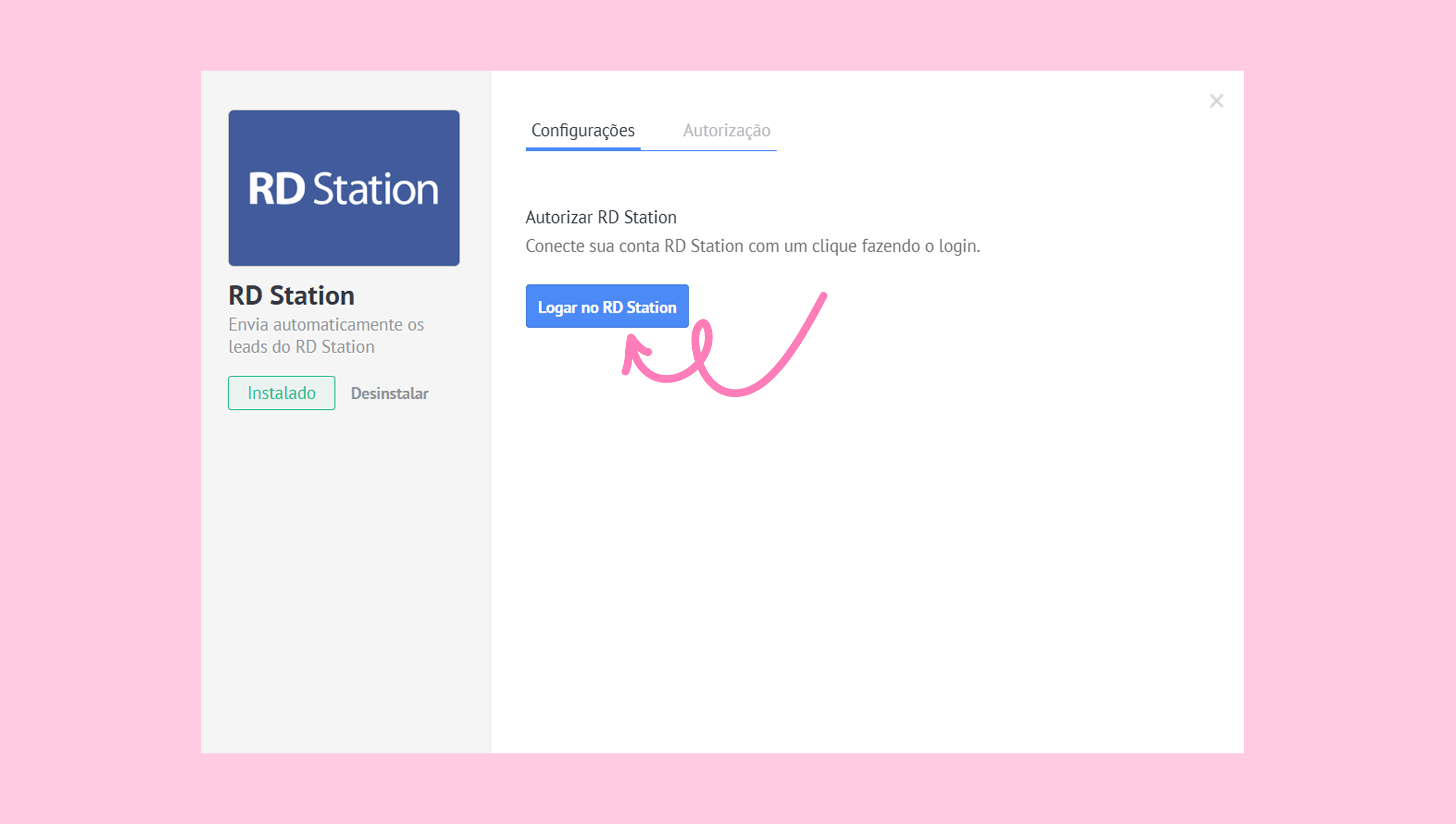 Faça login na sua conta da RD Station e clique no botão de Logar.