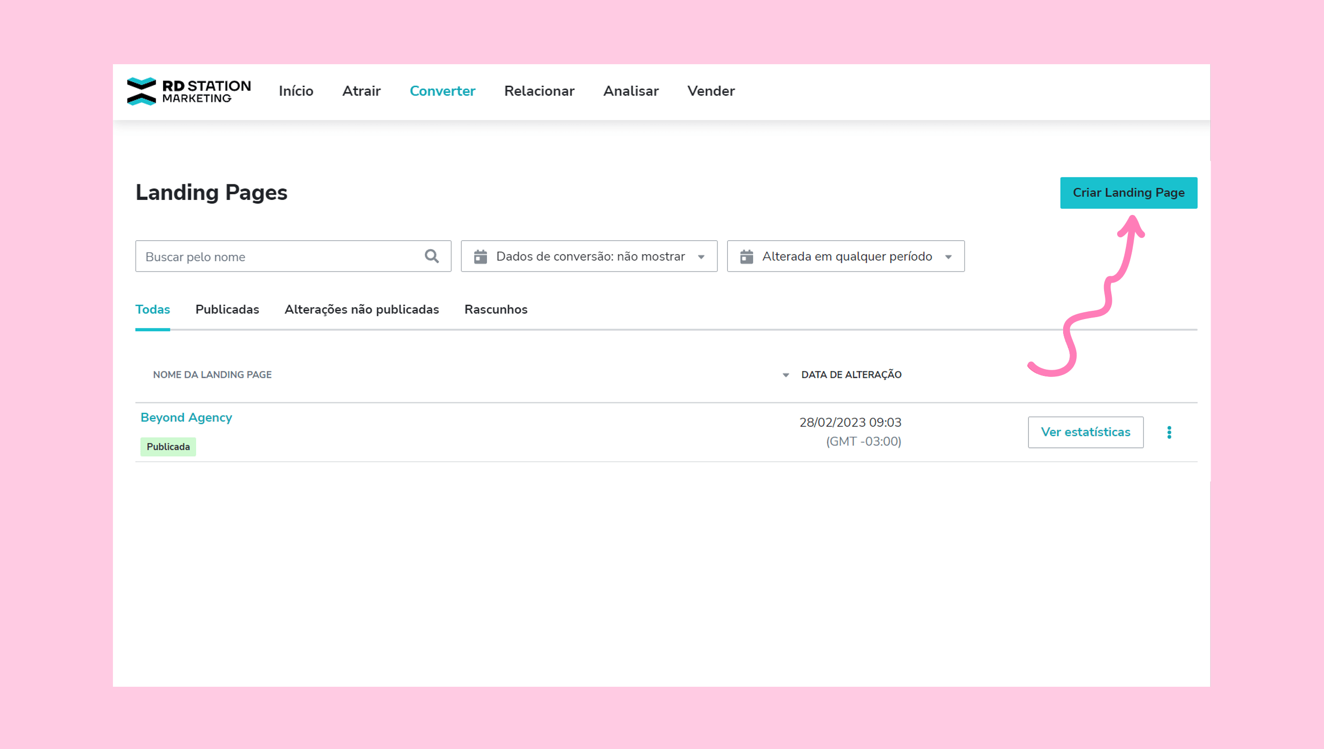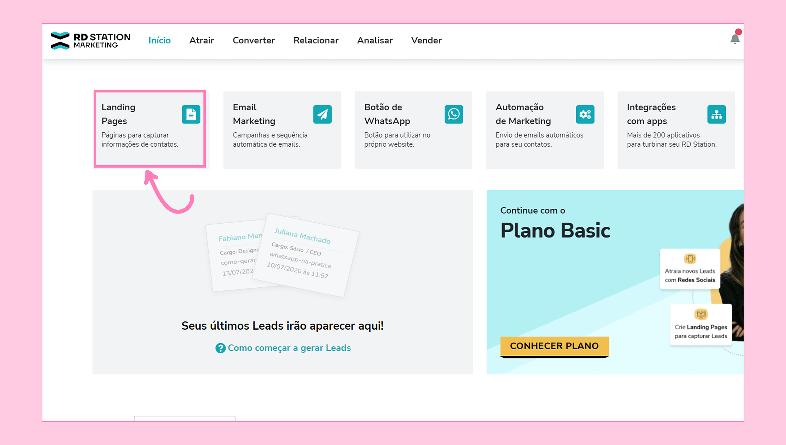 Na página inicial da sua RD Station, selecione Landing Pages.