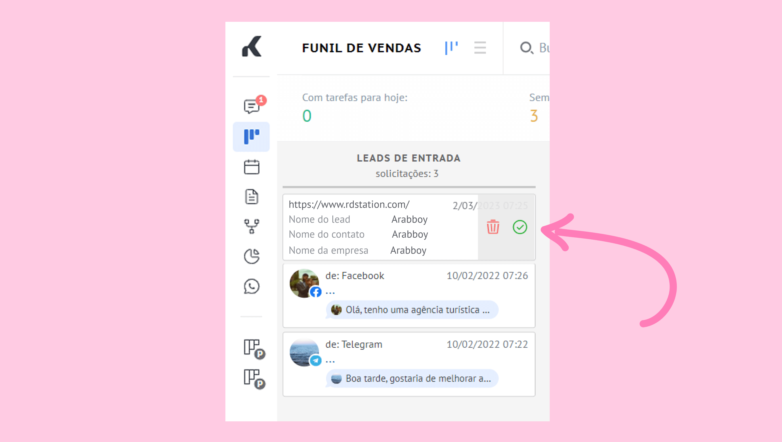 - Você pode mover o lead para outra etapa ou excluí-lo se não for adequado.