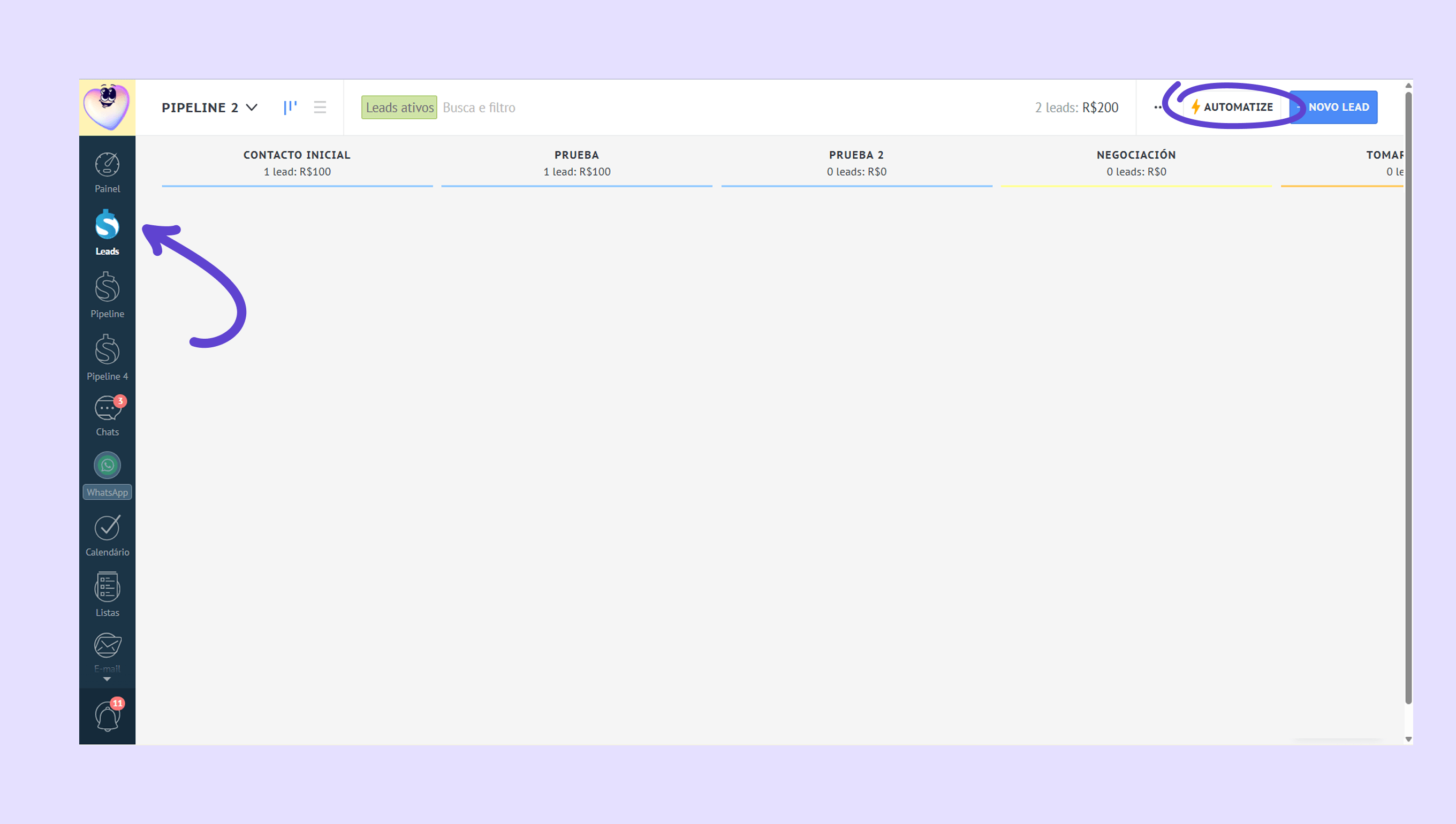 - Essas conversas são recebidas automaticamente como leads no seu CRM.