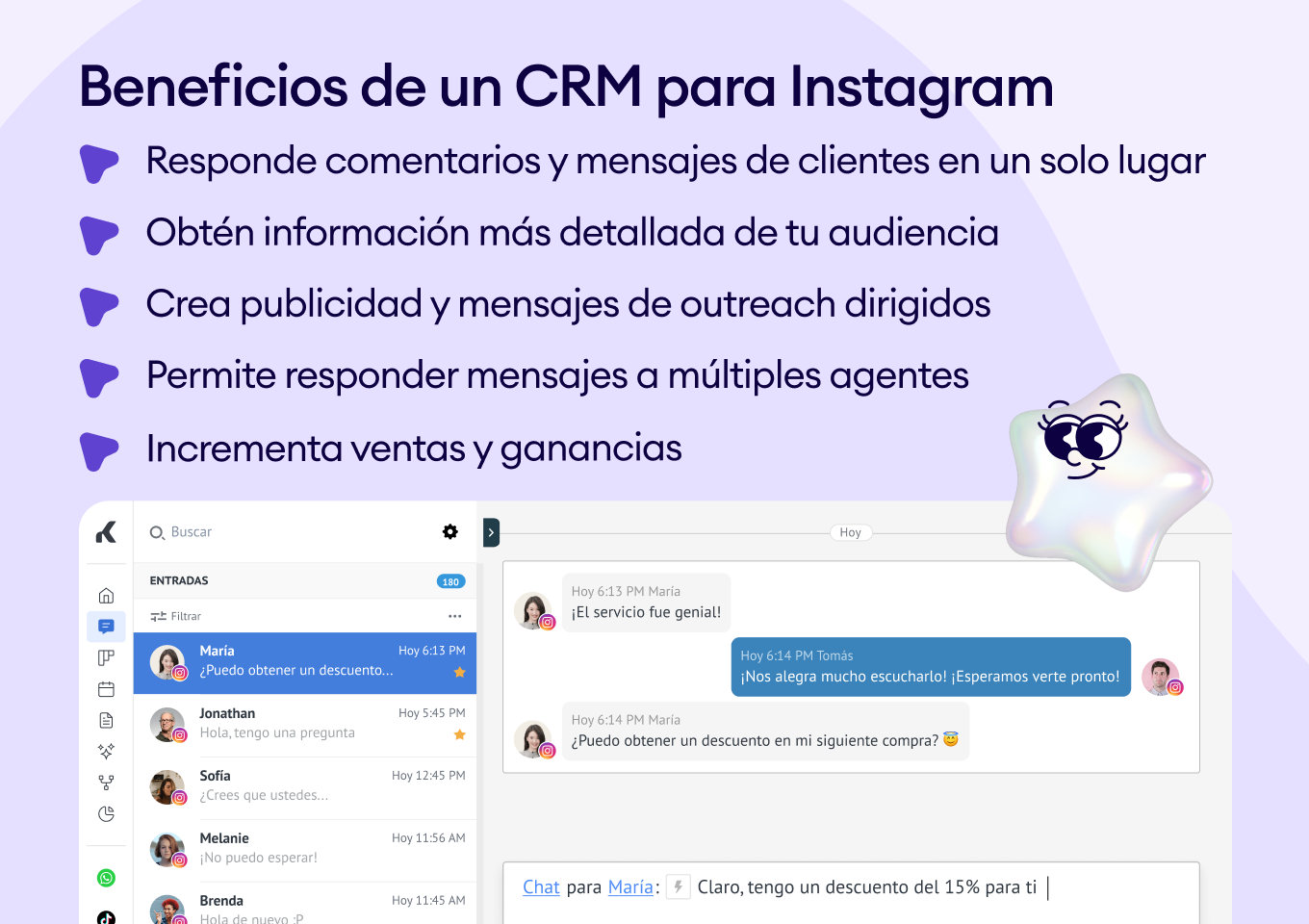 Una plataforma de gestión de relaciones con los clientes totalmente integrada con Instagram.