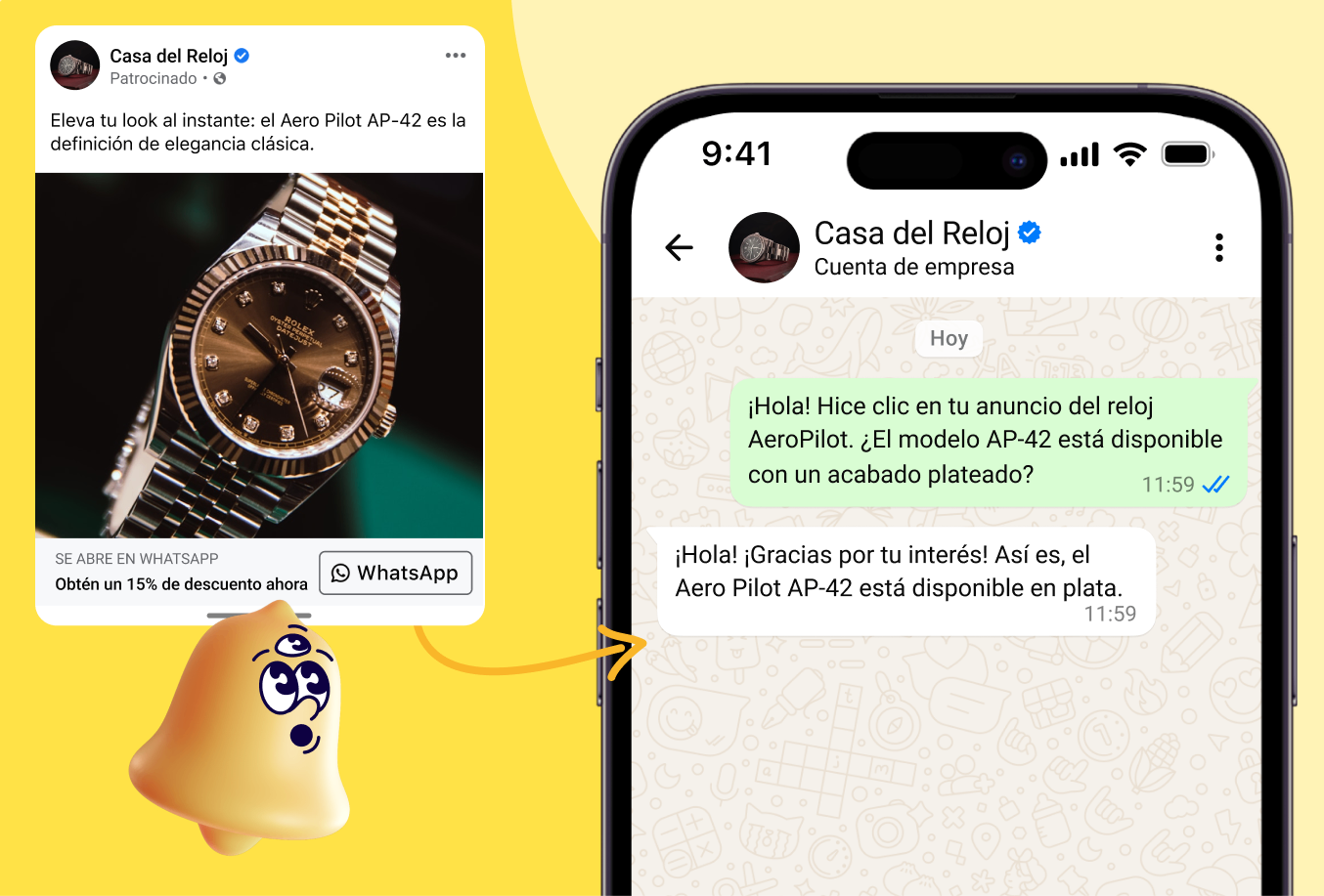 Los anuncios de clic a WhatsApp dentro del ecosistema de Meta eliminan la fricción al llevar fácilmente a los usuarios interesados a un chat y continuar con la conversación hasta que se satisfagan las necesidades del cliente.