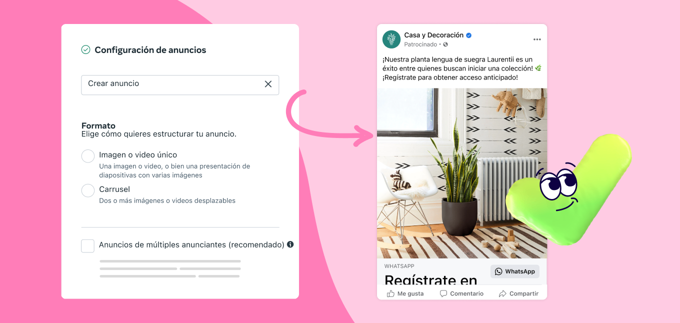 - Lanza anuncios de clic a WhatsApp utilizando los objetivos recomendados y la configuración de optimización de Meta.