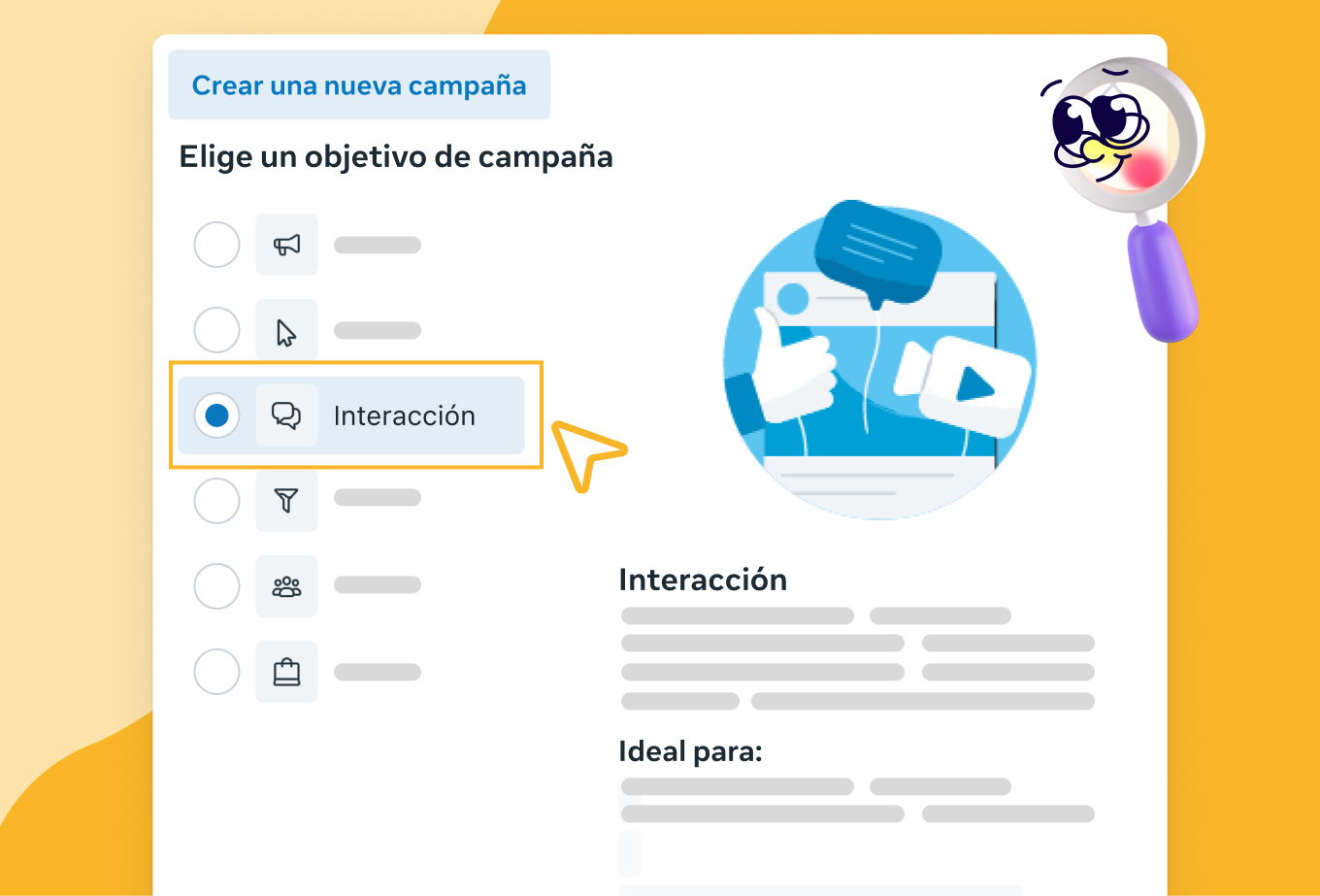 - Selecciona un objetivo (interacción, clientes potenciales, ventas o conciencia).