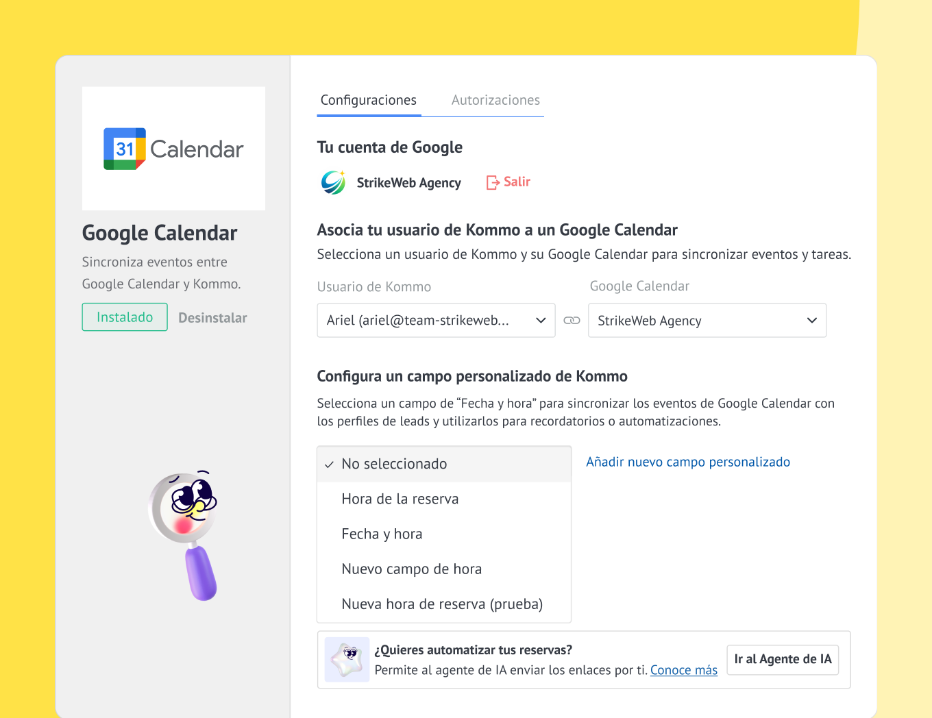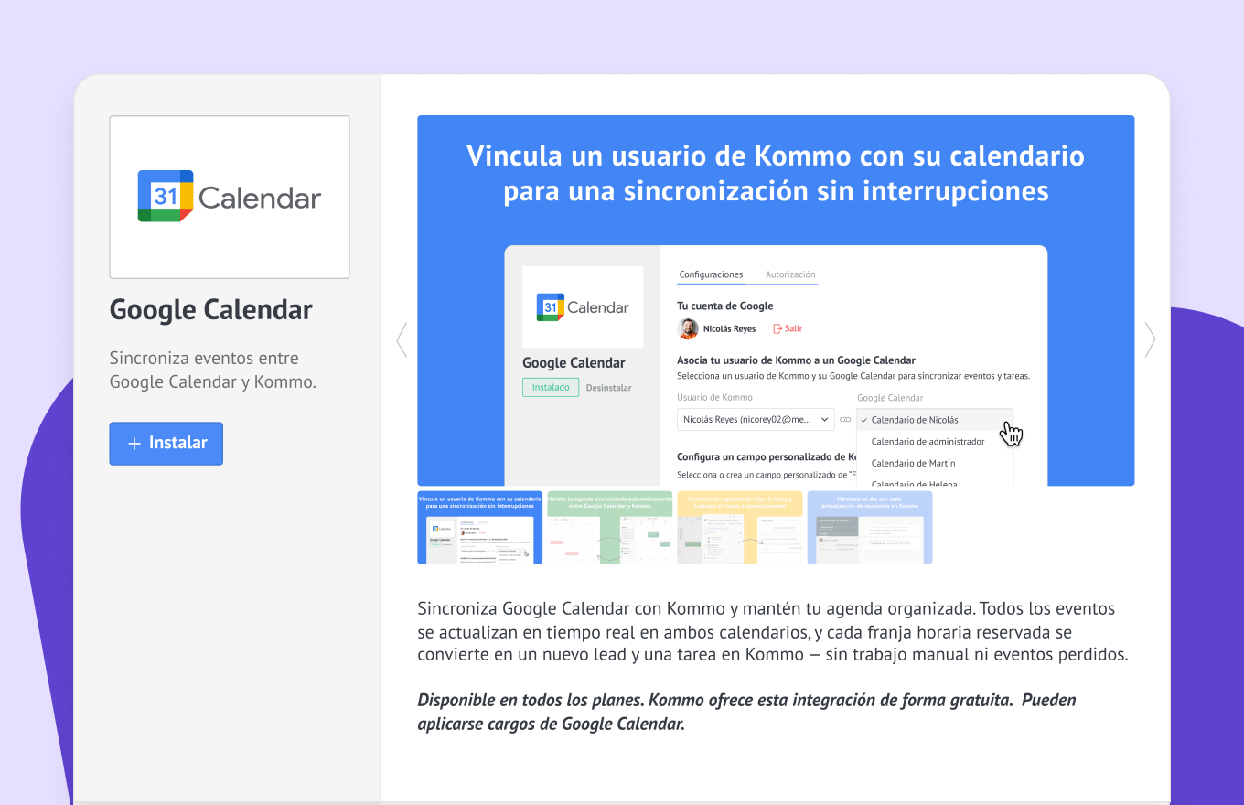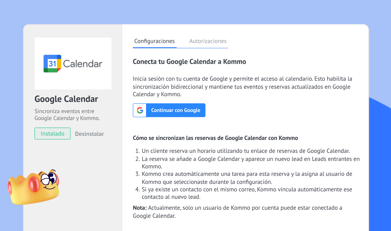 Cómo configurar la integración de Kommo + Google Calendar