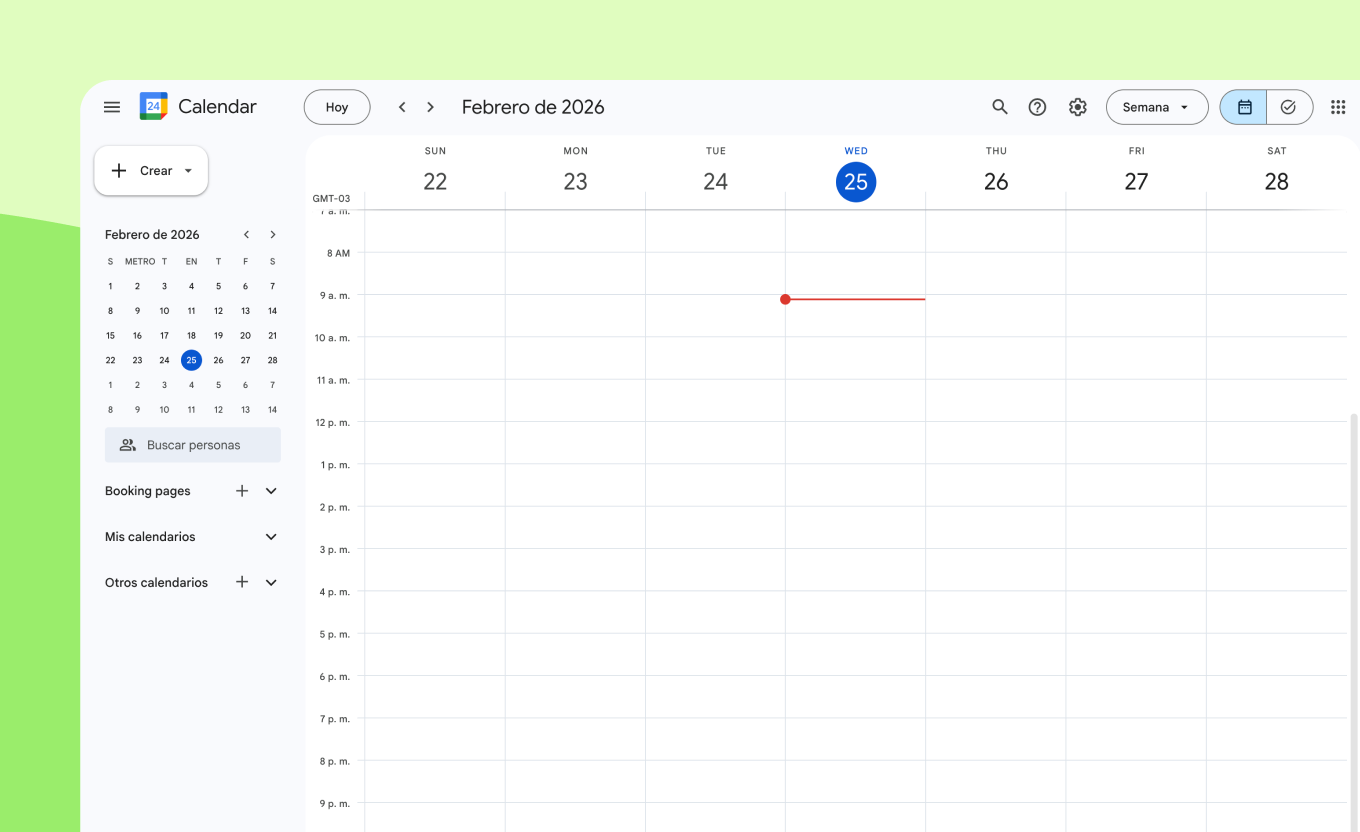 Colaboración en equipo: Puedes compartir Google Calendar para ver la disponibilidad en tiempo real, lo que hace la programación más rápida y eficiente.