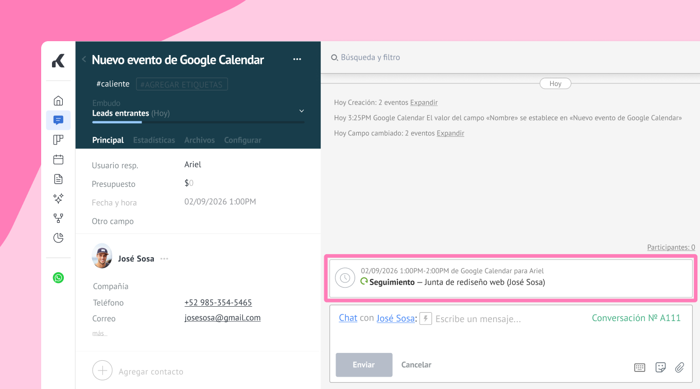 La integración con Google Calendar es una parte importante de este crecimiento, ya que conecta tu embudo de ventas con tu agenda diaria, permitiéndote gestionar todo tu flujo de trabajo desde una sola plataforma.