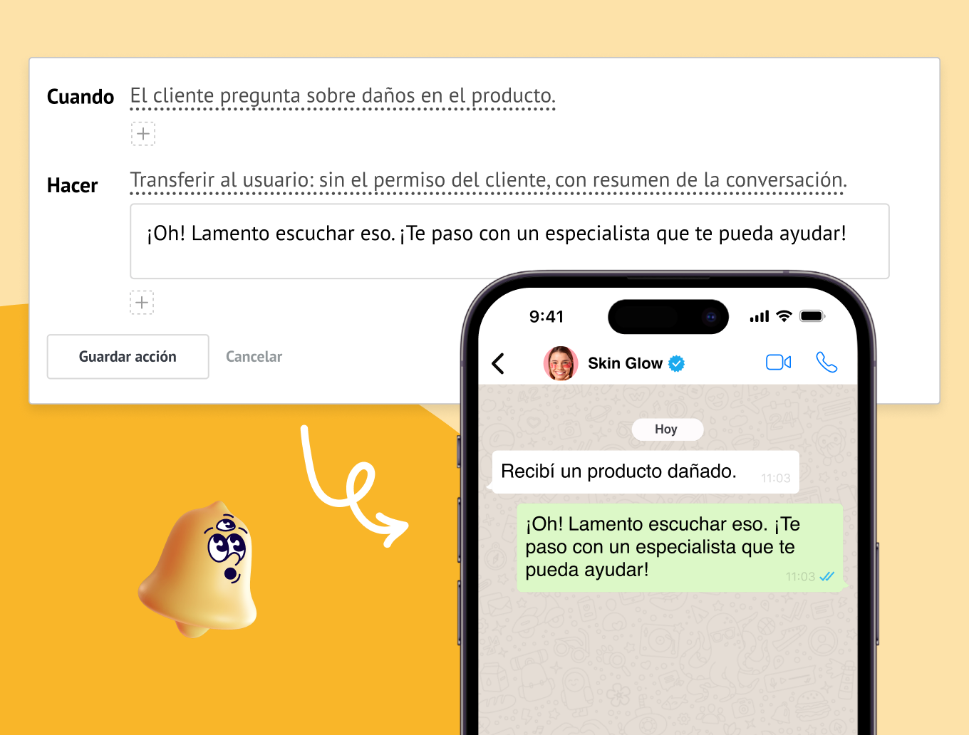 Transfiere la conversación a un humano para brindar atención más personalizada