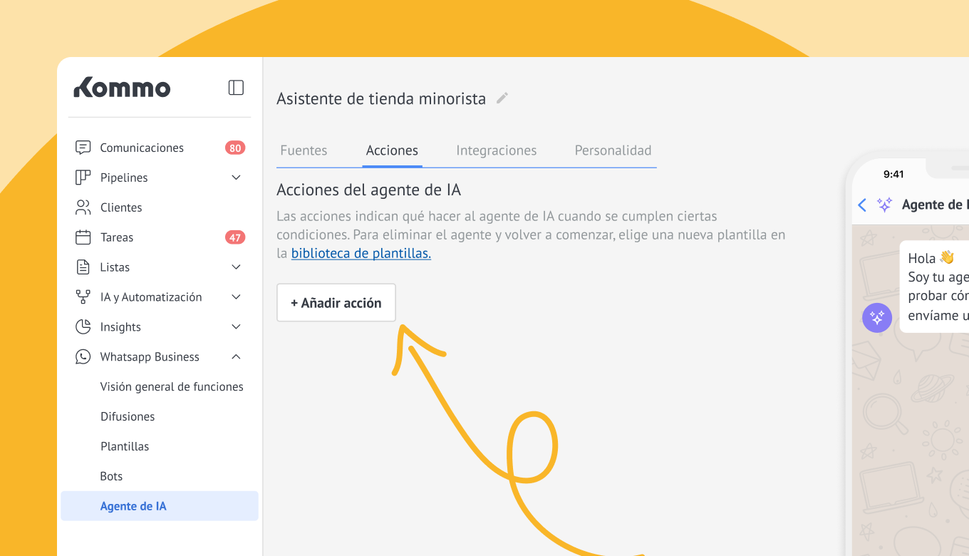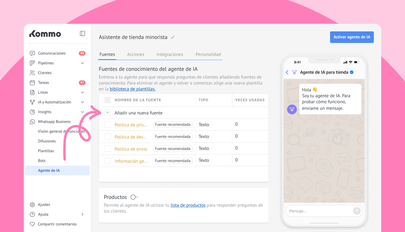Lleva WhatsApp al siguiente nivel con el Agente de IA de Kommo.