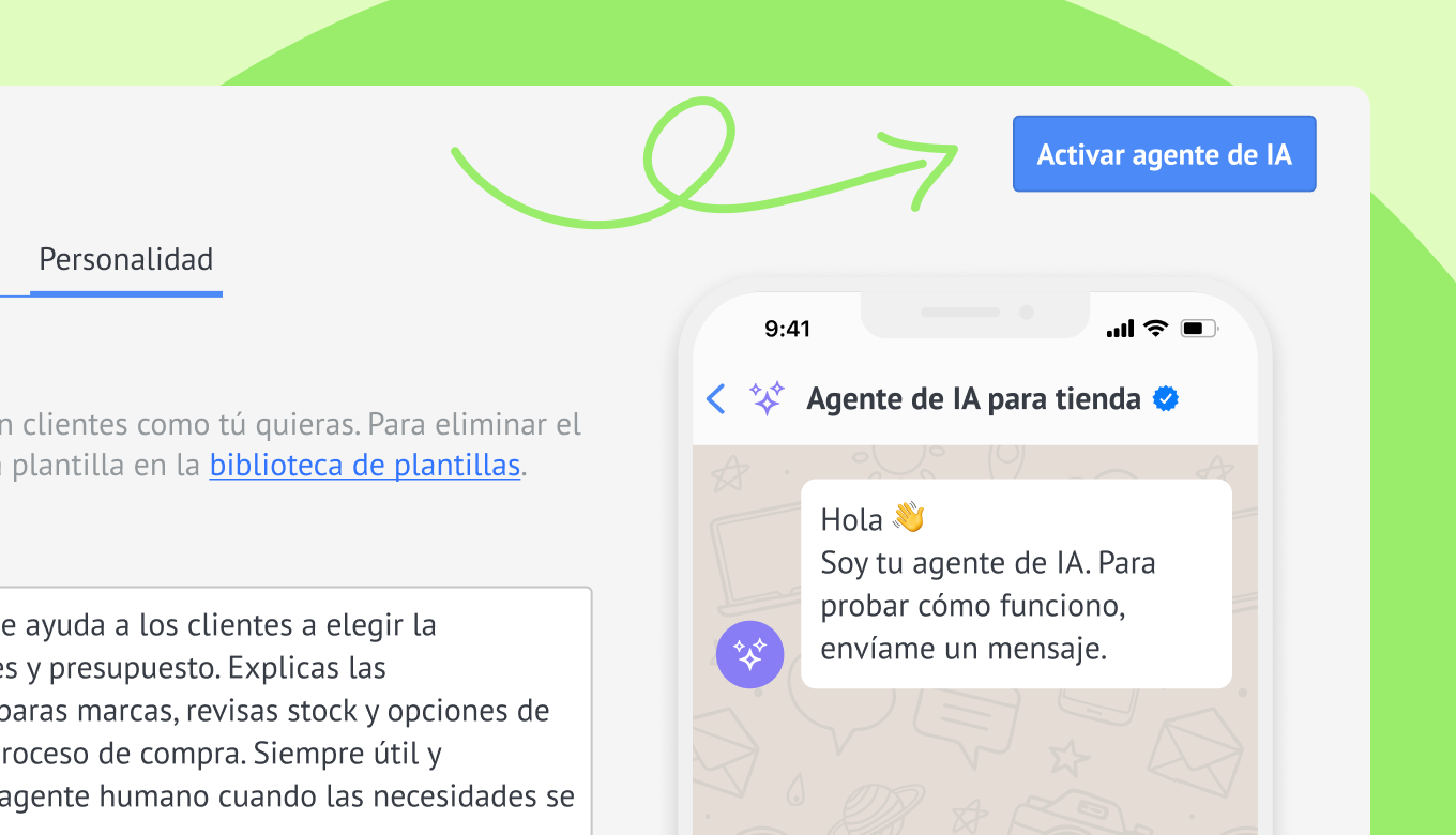 Una vez satisfecho, haz clic en Activar Agente de IA, y tu Agente estará listo para responder a todos los chats.