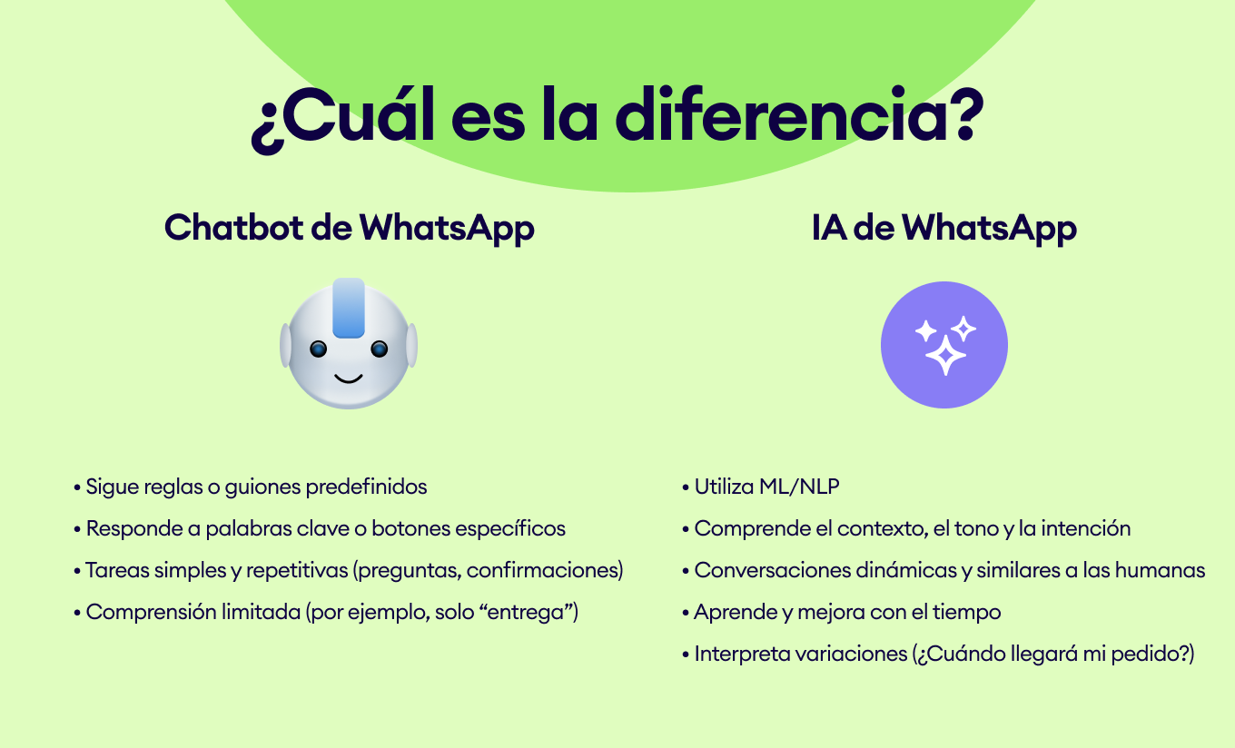 ¿Cuál es la diferencia entre la IA de WhatsApp y un chatbot de WhatsApp?