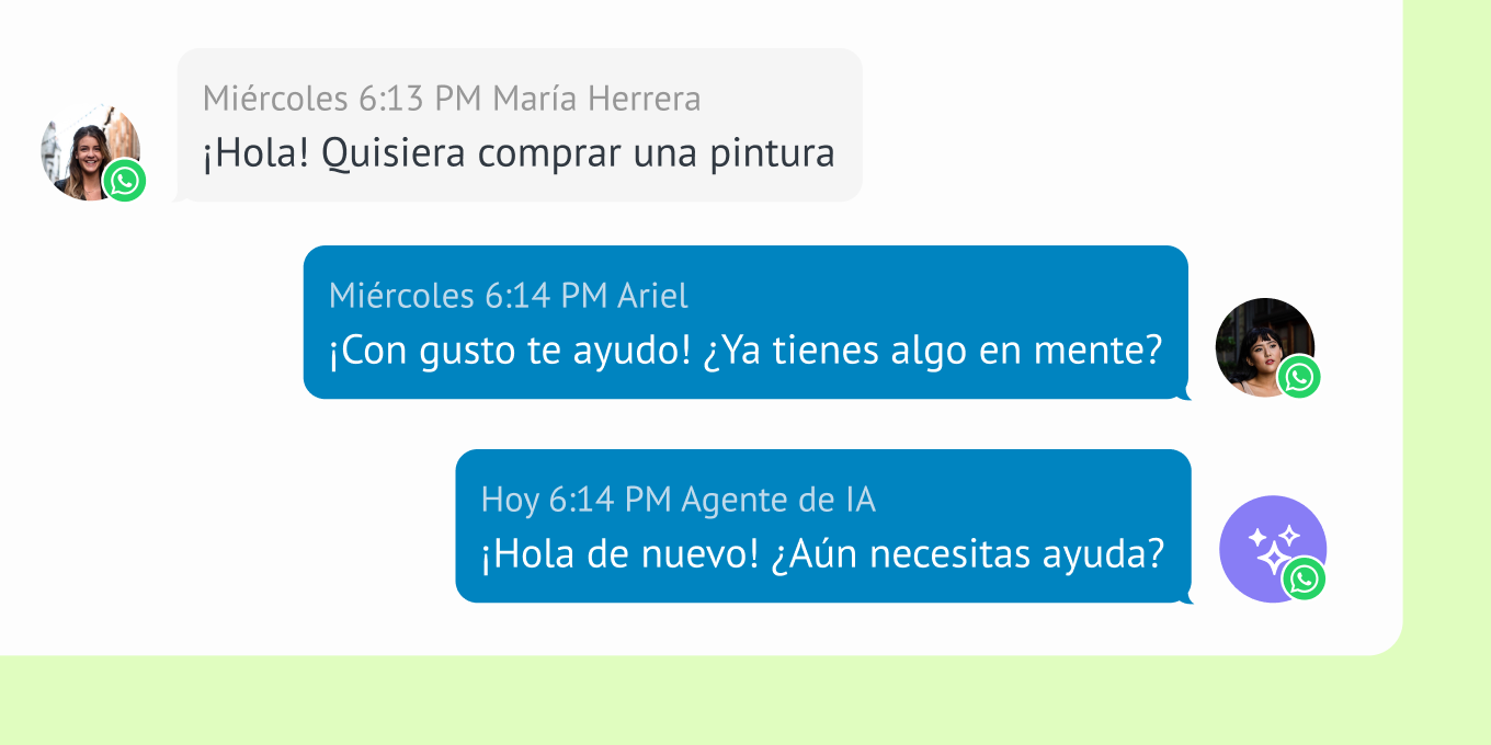 La automatización con IA permite responder al instante a las preguntas de los clientes, incluso cuando tu equipo está desconectado. En lugar de esperar minutos u horas, los clientes obtienen respuestas en segundos, permaneciendo comprometidos y con menor riesgo de abandonar la conversación.