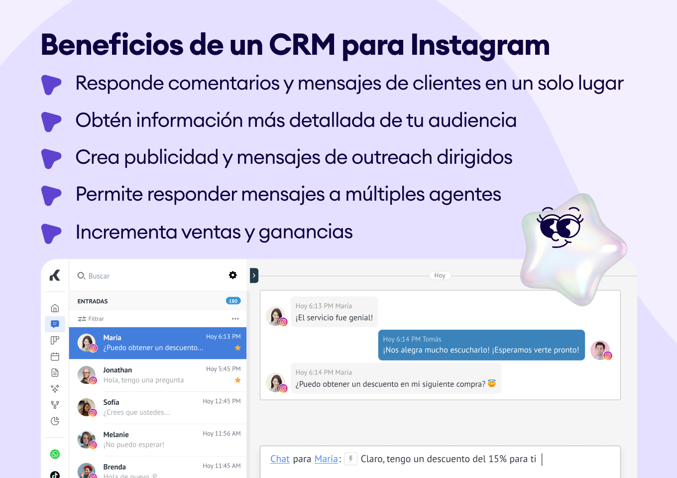 ¡Pero eso no es todo! Con Instagram CRM, también puedes: