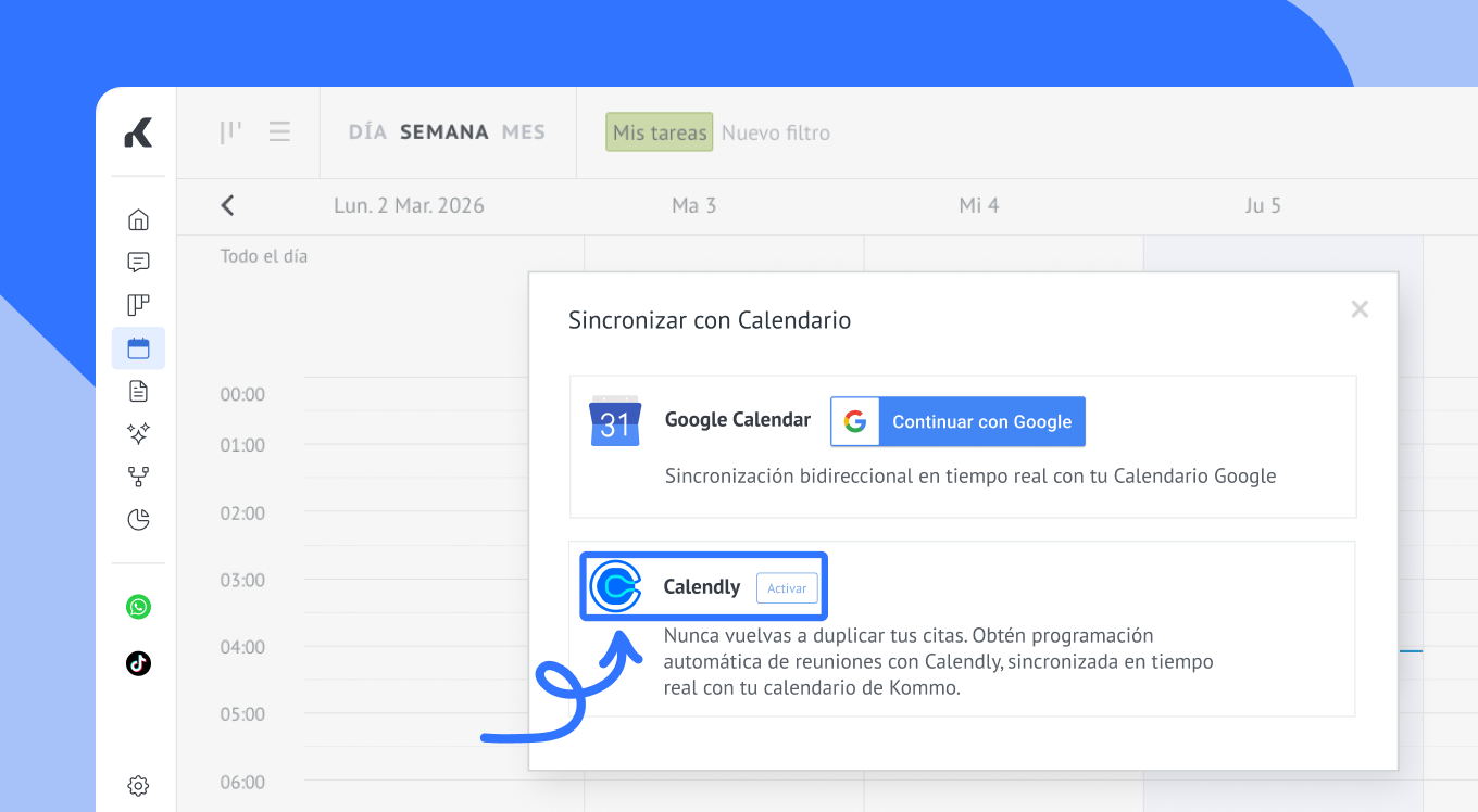 Integra Calendly, Google Calendar y Slack en Kommo.