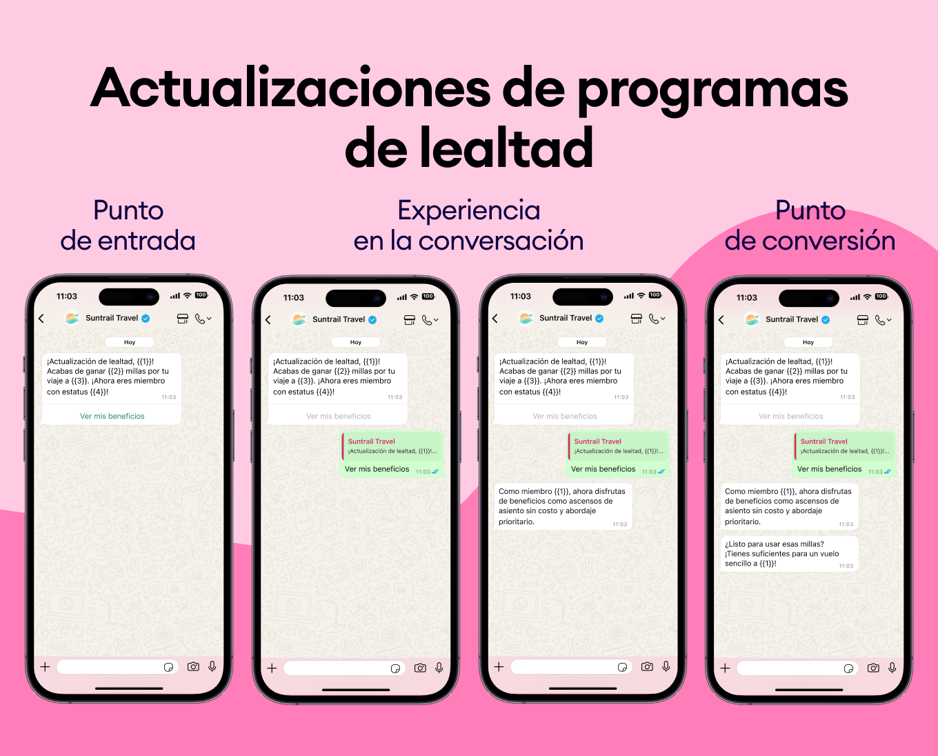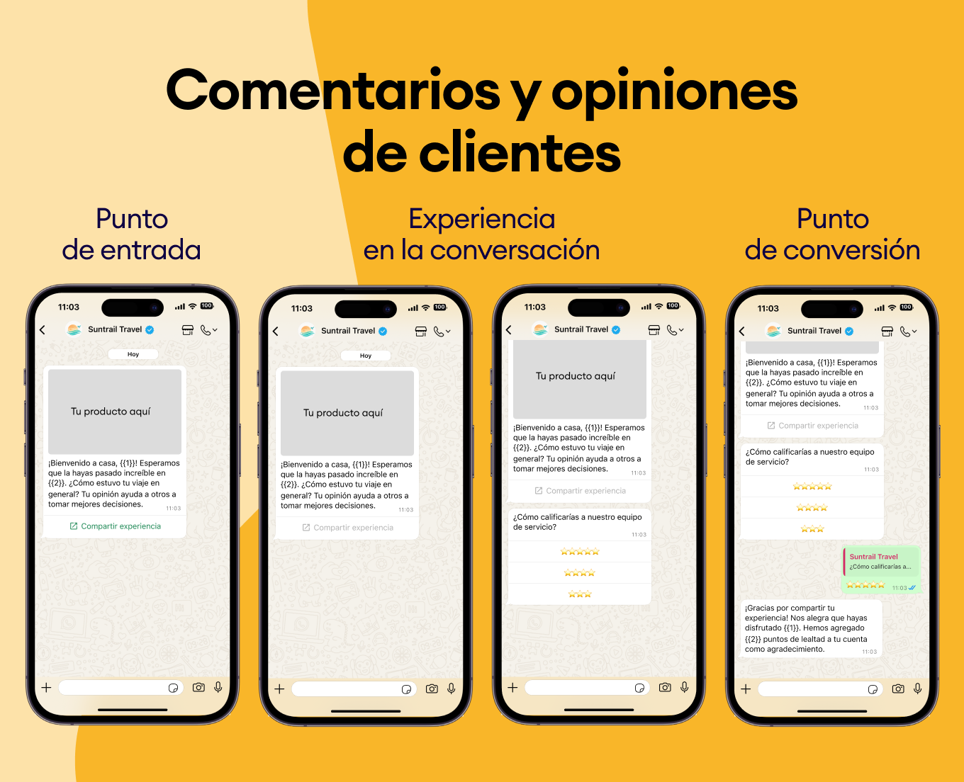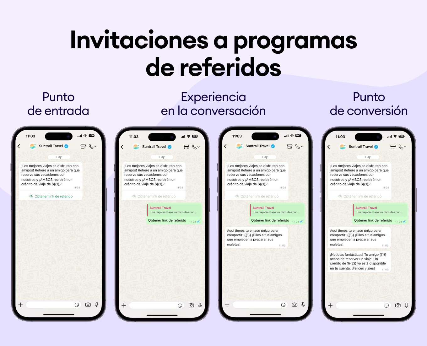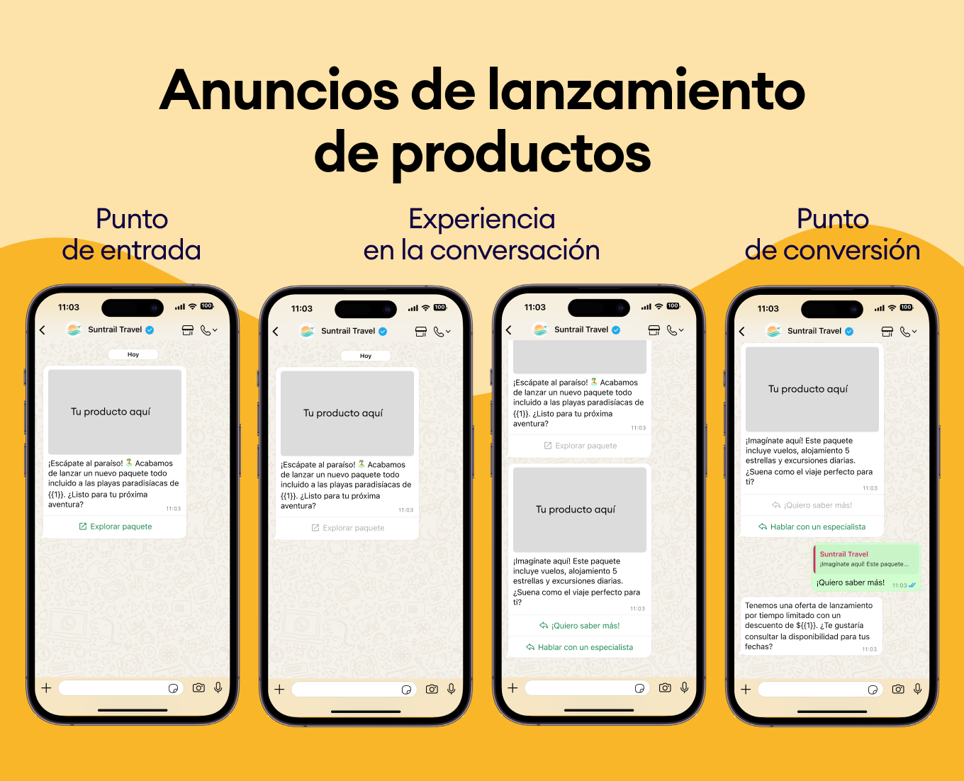 Usa el historial de compras de tus clientes para sugerirles nuevos destinos. Envía plantillas de WhatsApp como “¿Te encantó Bali? Te vas a obsesionar con Costa Rica” y asegúrate de que siempre elijan tu negocio.