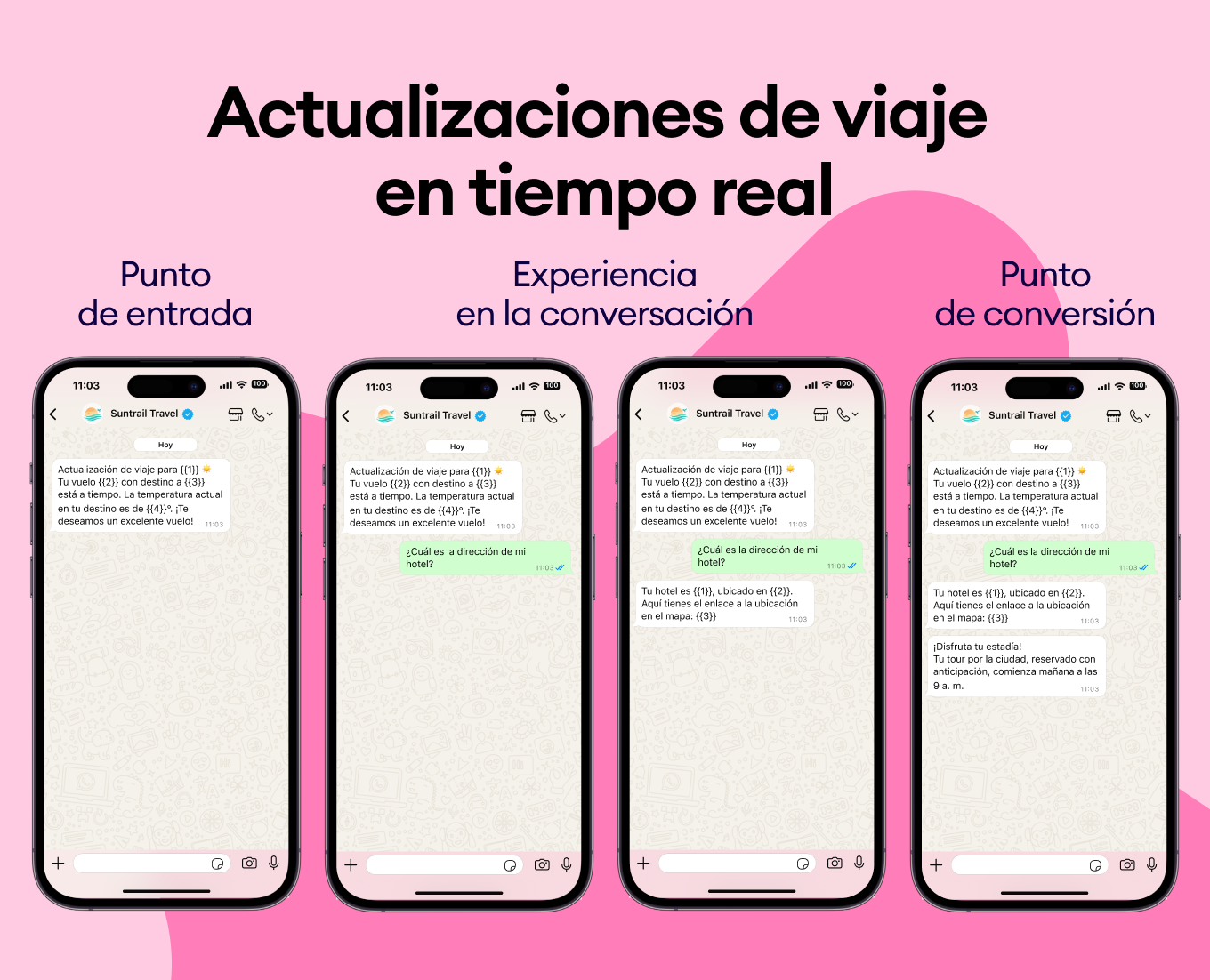 Retrasos de vuelo, cambios de puerta, ajustes de itinerario. Mantén informados a tus pasajeros sin saturar tu línea telefónica.