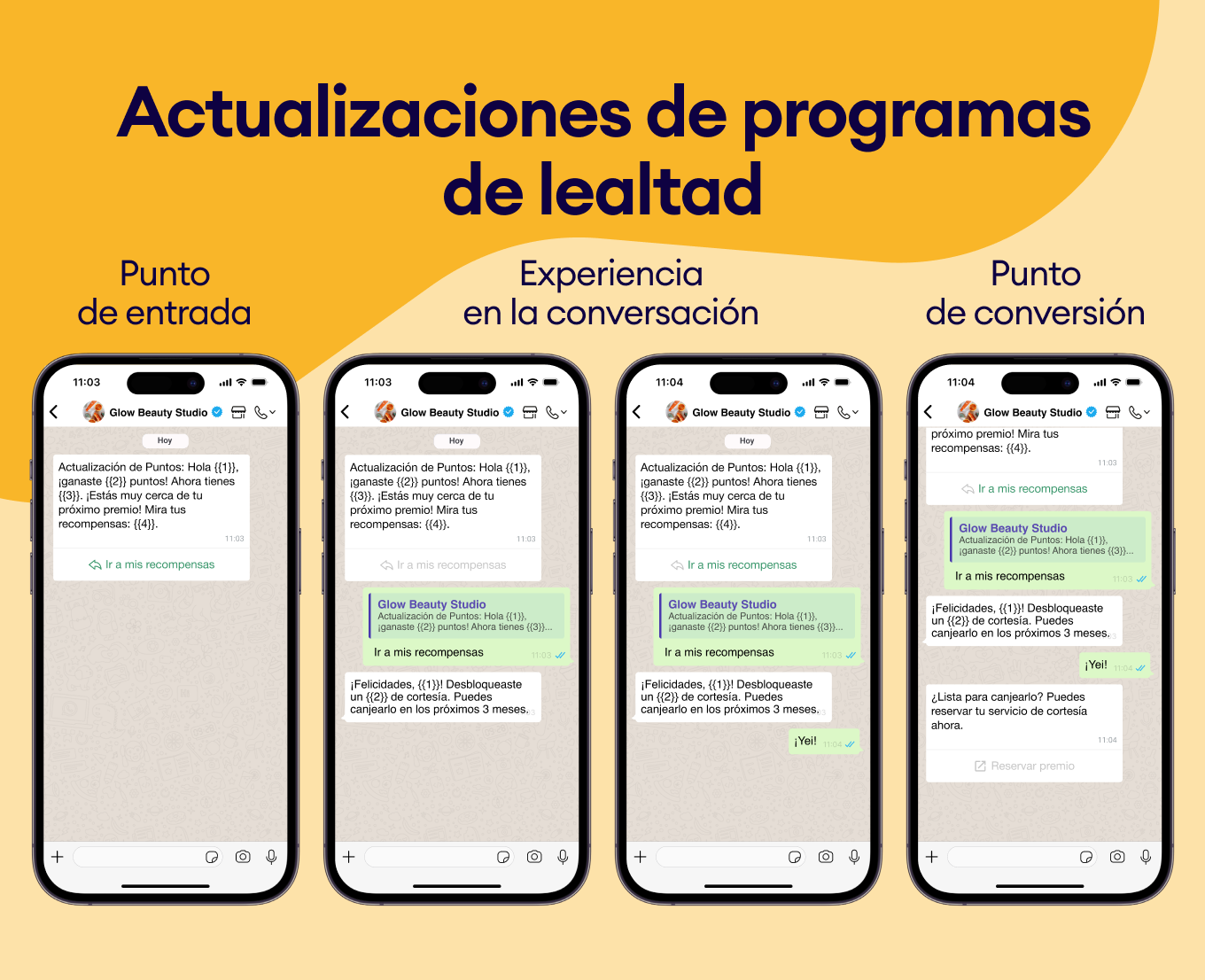 Conecta con tus clientes mediante recordatorios personalizados sobre sus puntos o beneficios usando plantillas de WhatsApp.