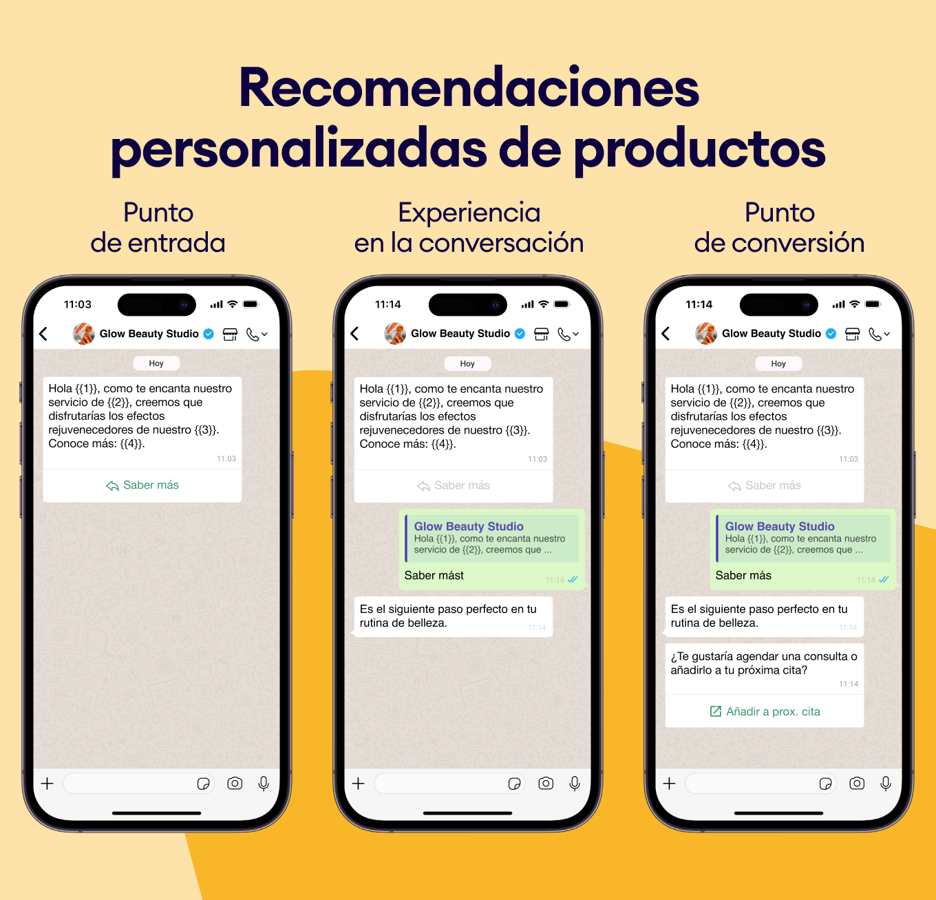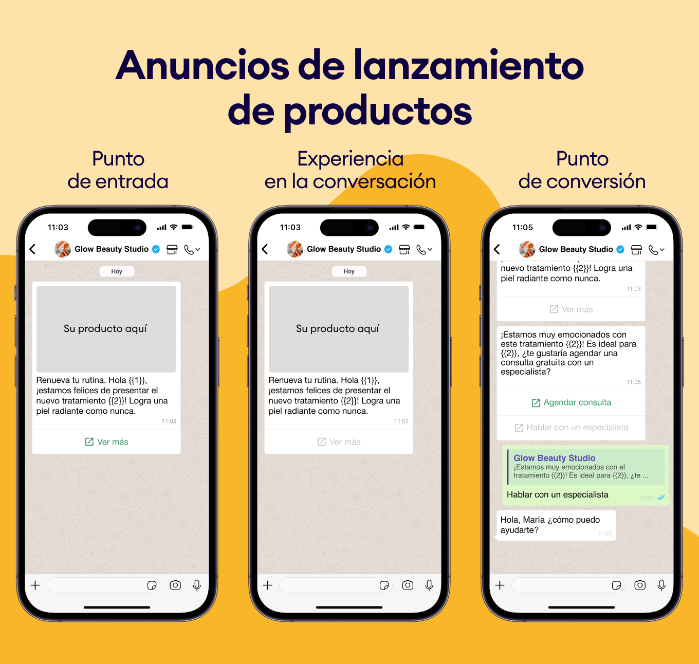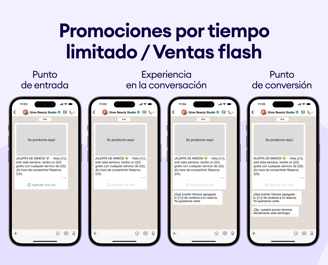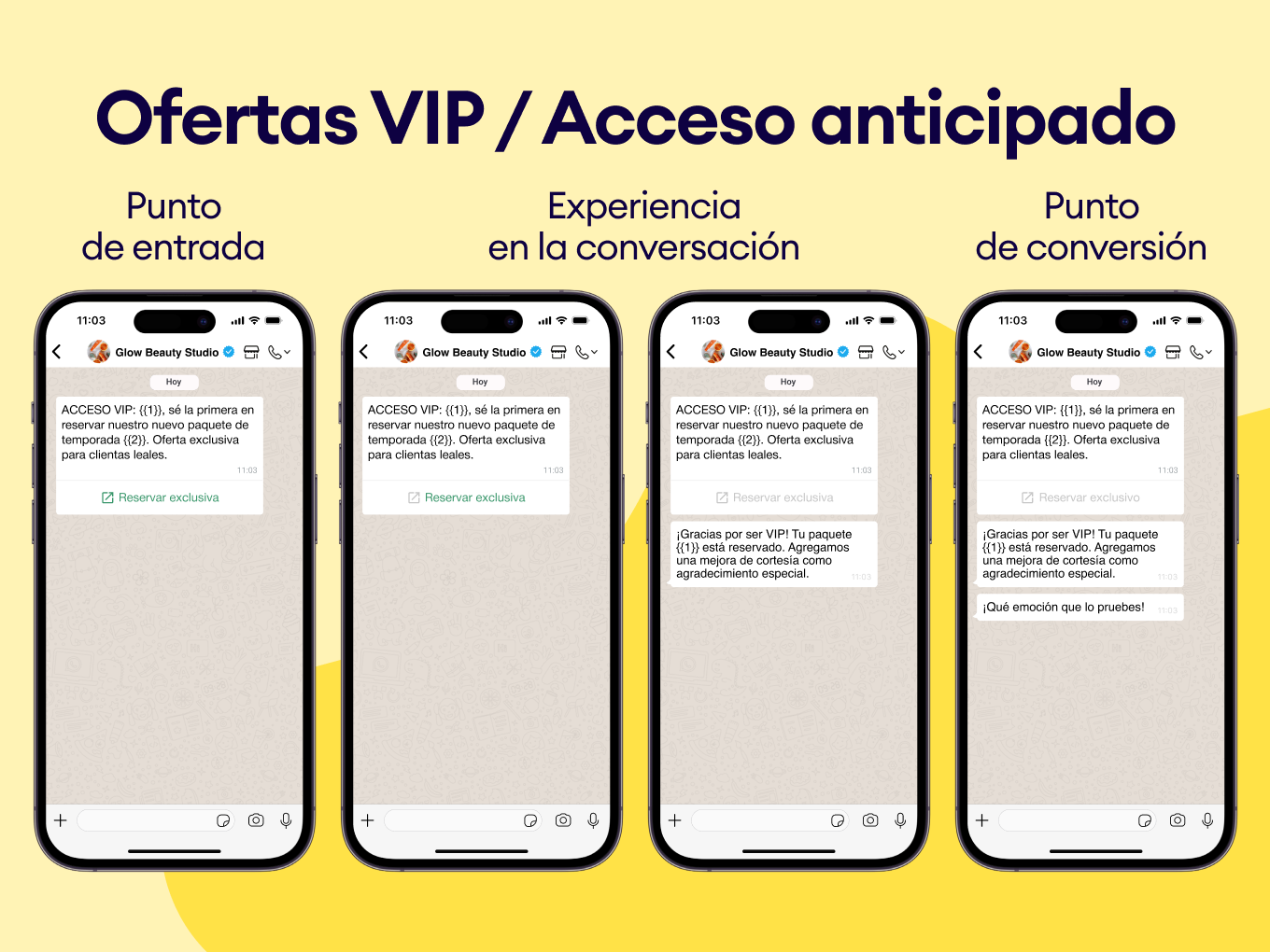 Ofrece acceso exclusivo a nuevos tratamientos o lanzamientos de productos mediante plantillas de mensajes de WhatsApp.
