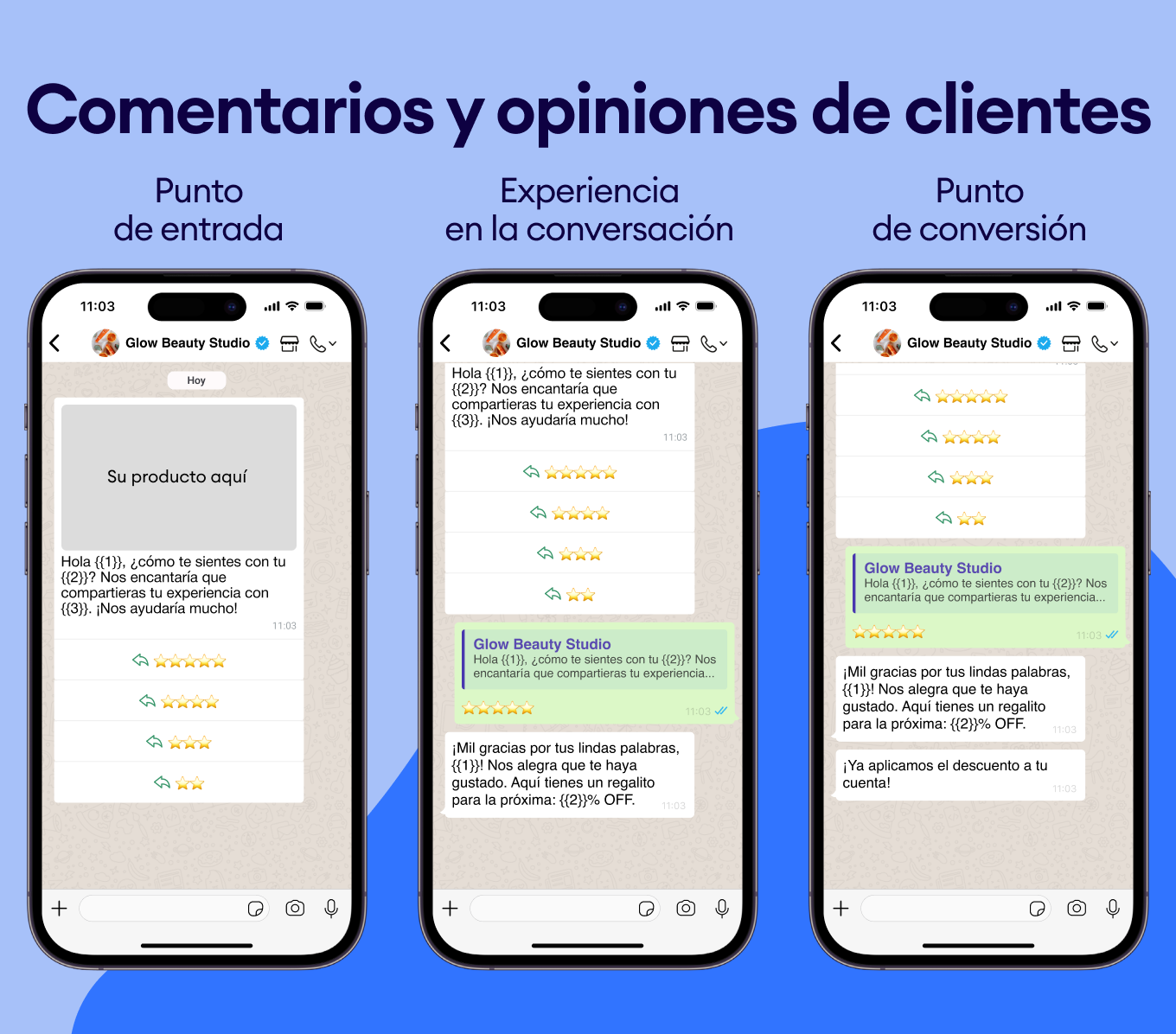 Recopila reseñas y feedback mediante mensajes automáticos de WhatsApp después de la visita o compra del cliente.