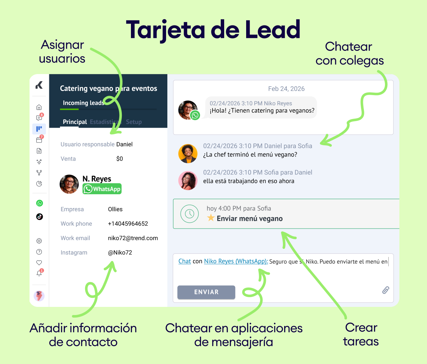 Mensajería a través de WhatsApp en la Tarjeta de lead