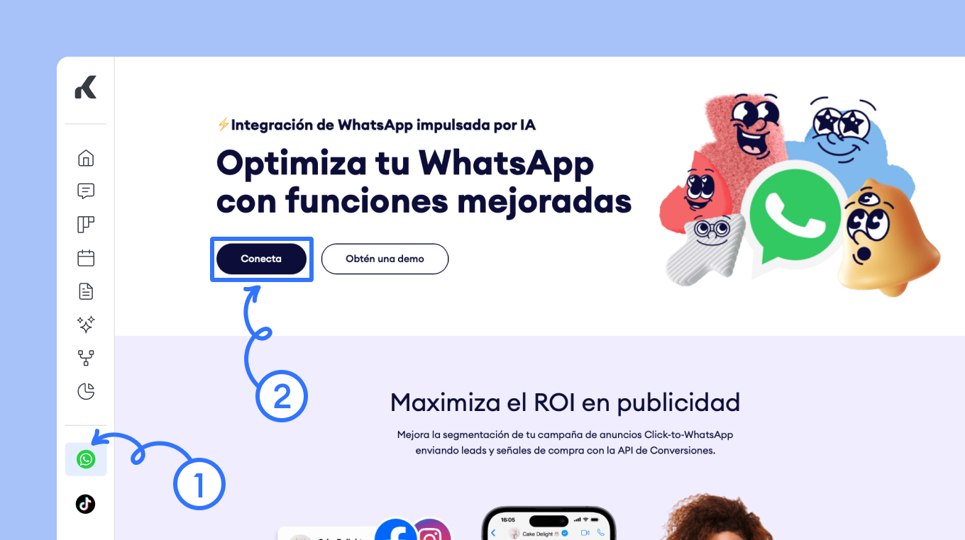 - A continuación, sigue los pasos indicados para conectar tu número de WhatsApp