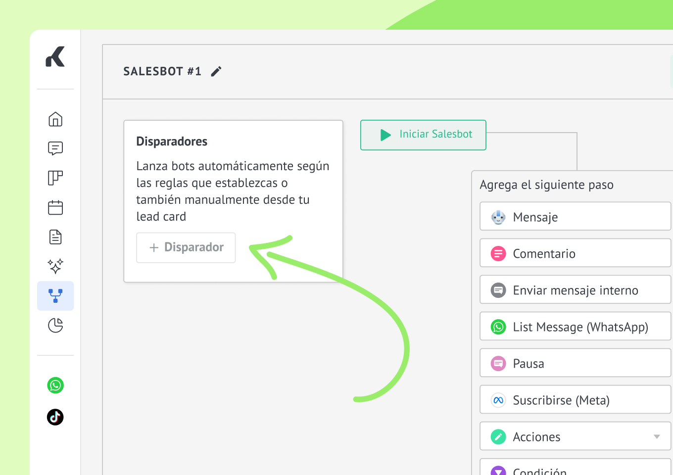 👇 Aquí tienes más información sobre el Salesbot de Kommo y cómo crear uno desde cero.