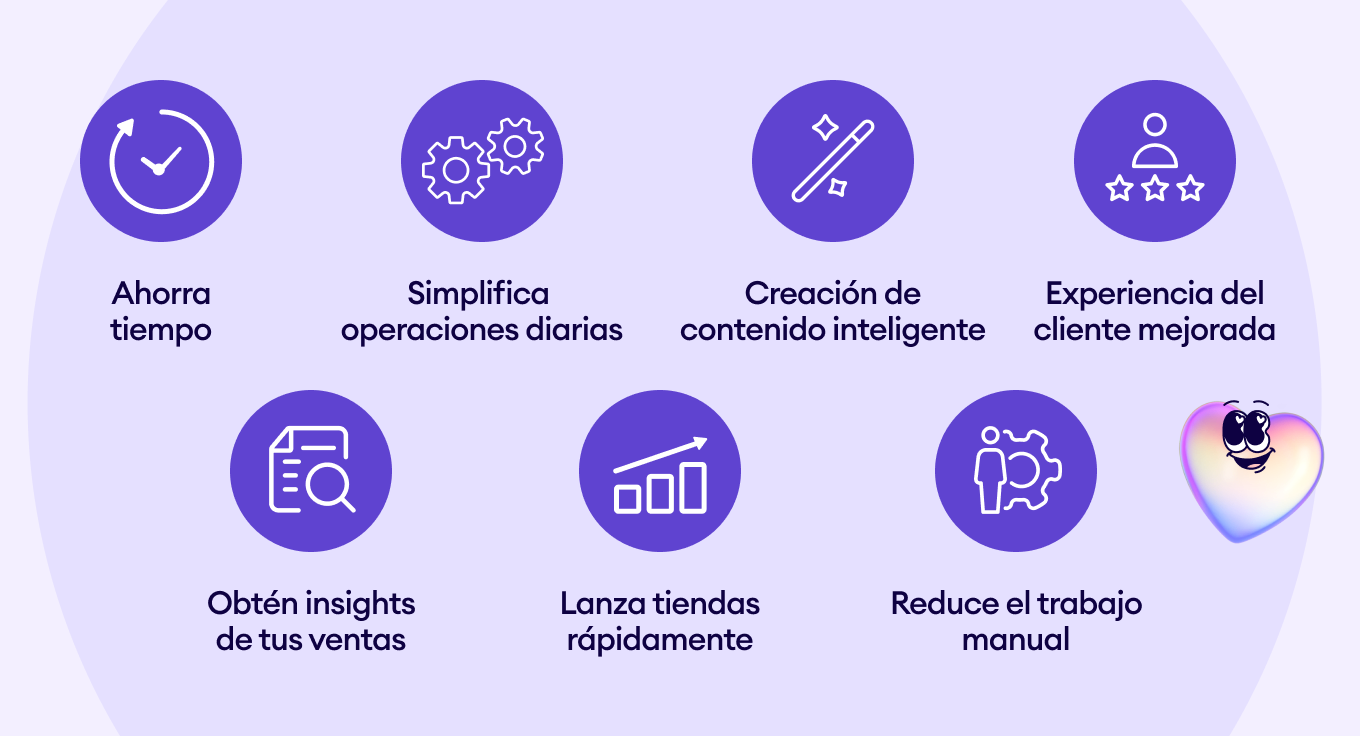 - Ahorra tiempo al automatizar la configuración de la tienda y tareas rutinarias.