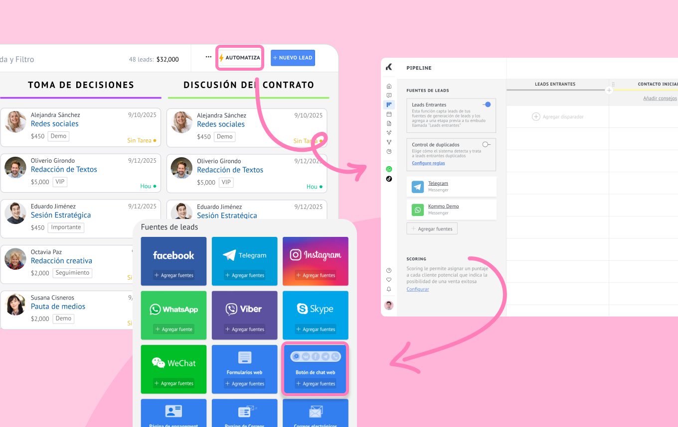 Para sacar el máximo provecho del soporte de chat en vivo, debes utilizar una plataforma como Kommo. Las características de Kommo lo convierten en una de las mejores herramientas para pequeñas y medianas empresas que buscan escalar.