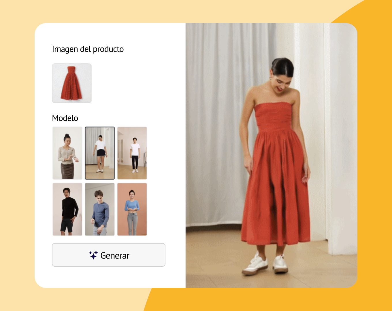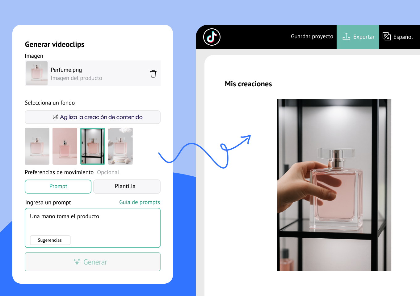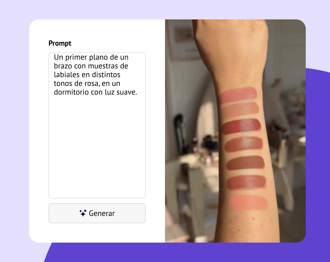 Sube una foto de tu producto, un moodboard o cualquier imagen de tu marca, añade un prompt y obtén un video listo para publicar.