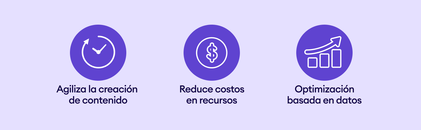 Olvídate de costosas sesiones de fotos o video. Los avatares de IA y la edición automatizada reducen tus gastos sin sacrificar contenido de alta calidad y con la identidad de tu marca intacta.