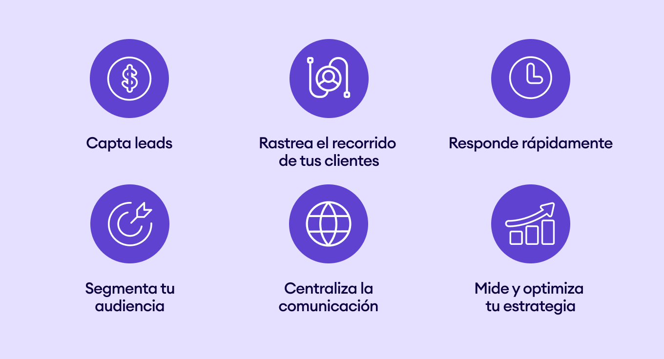 Organiza tus leads según el anuncio que vieron, el producto que les interesó o cómo respondieron a tu formulario. Esto te permite enviar mensajes más dirigidos y con mayor probabilidad de conversión.