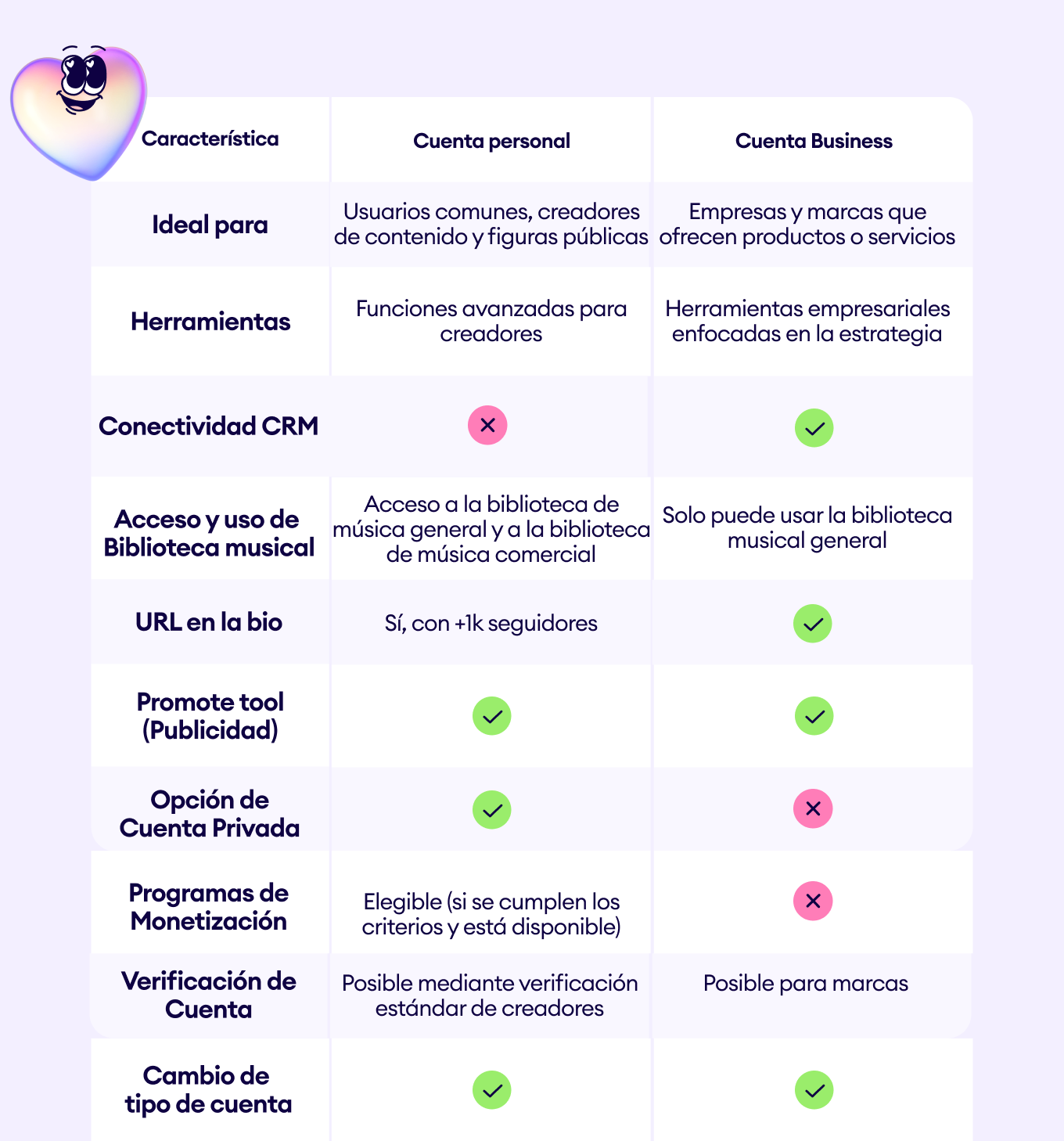 Diferencias entre una cuenta personal de TikTok y una cuenta Business