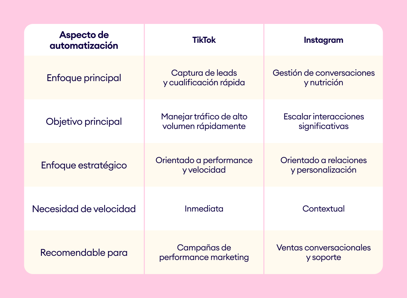 Aun así, cada plataforma las aborda de forma diferente. La clave no es qué automatizas, sino cómo y por qué lo haces en Instagram y TikTok.