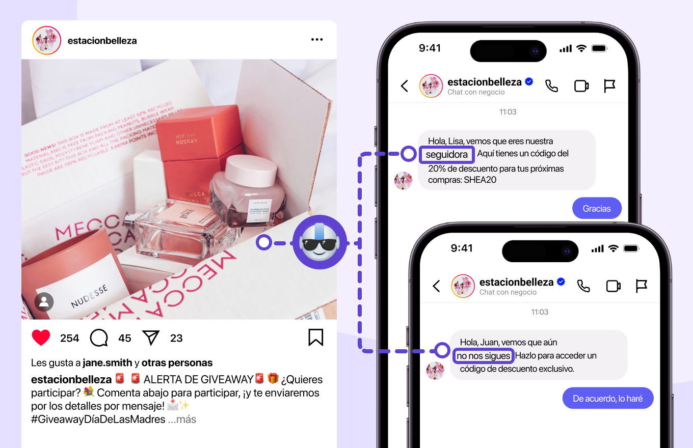 Personaliza las respuestas dependiendo de si el usuario ya sigue tu cuenta o no.